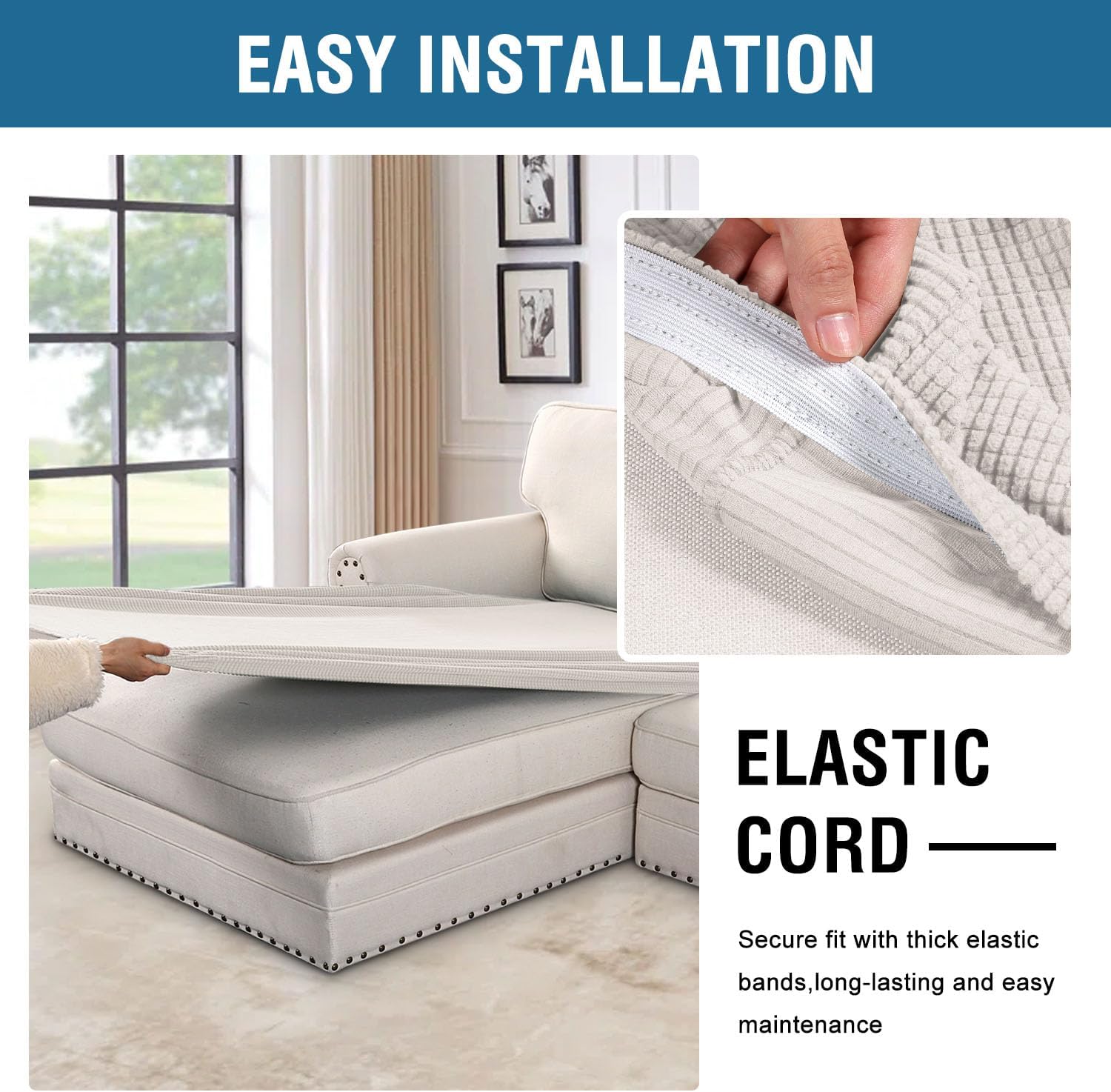 - GREAT FIT: Set of 1. This innovated cushion slipcover is crafted from durable and soft high stretch knitted jacquard fabric. Chaise Lounge Cover for Both Left/Right L Shaped Couch(fits up to 33-37 inch width, 55-61 inch depth, 3-8 inch thickness). Feature one-size-fits-most, kindly measure before ordering