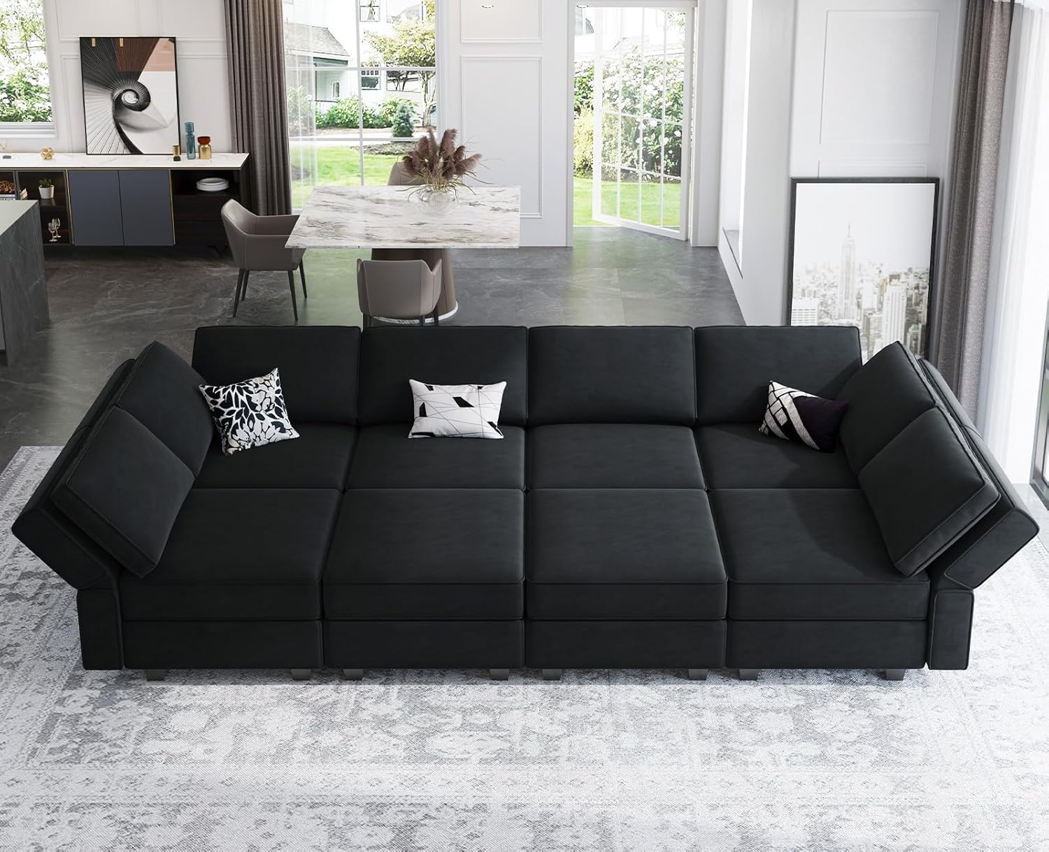 Belffin Modular Sectional Sofa with Storage Chaises Sleeper Couch 8 Seat Sectional Sofa Bed Black