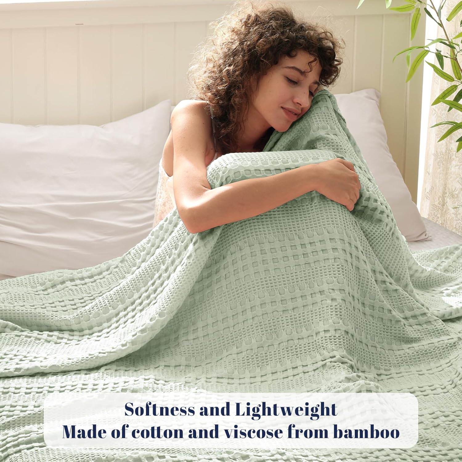 - Softness and Lightweight: This blanket made from 60% rayon derived from bamboo and 40% cotton. The moment your skin touches the blanket, you will feel an unexpected silky touch.The perfect combination of softness and lightweight ensures a luxurious feel that you will love, it will become an indispensable bedding in your life.