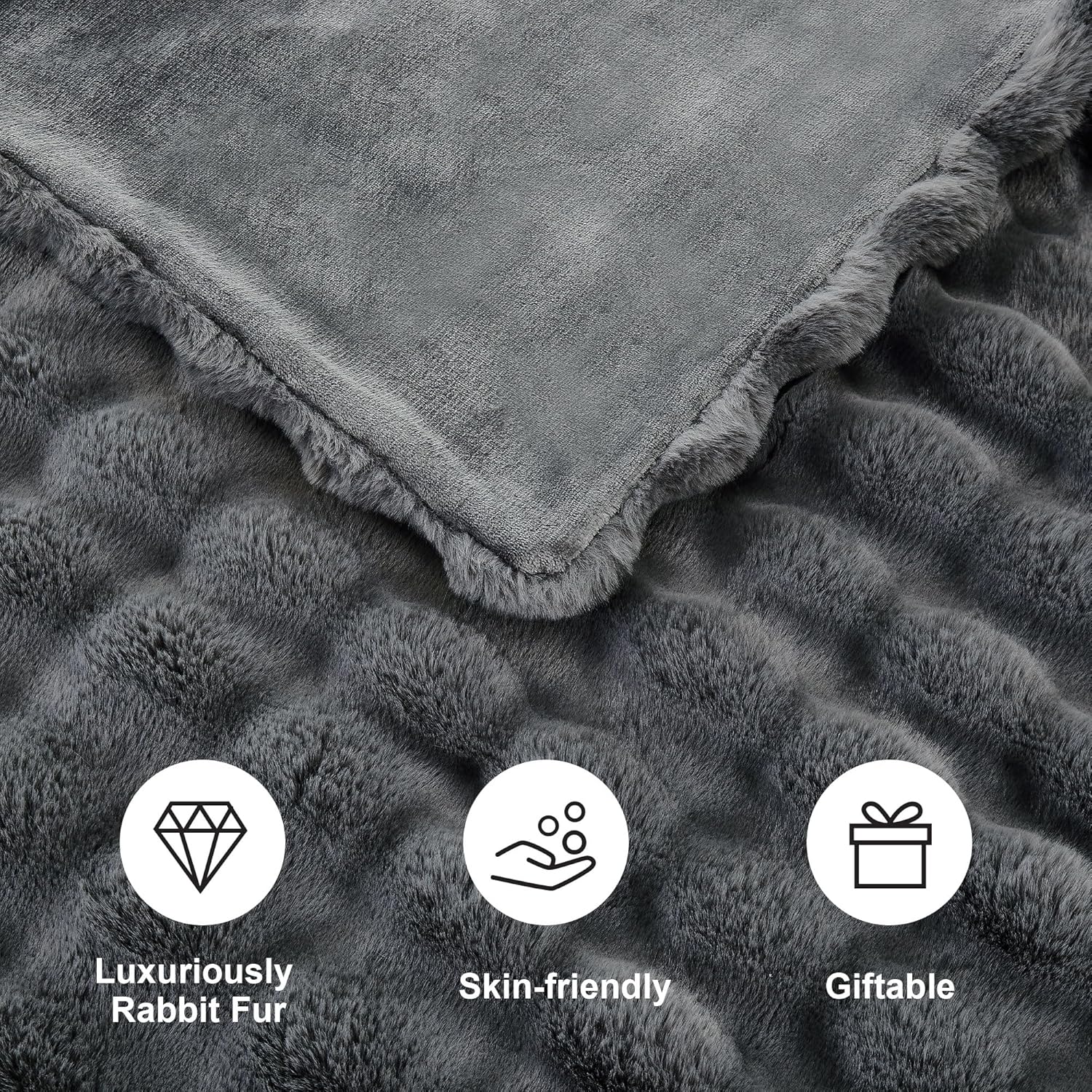 DREAMNINE Soft Fuzzy Bubble Faux Rabbit Fur Throw Blanket for Couch 50" x 60", Double Sided Long Shaggy Thick Warm Fluffy Blankets for Winter, Decorative Luxury Gray Cozy Plush Cute Furry Blanket,Grey