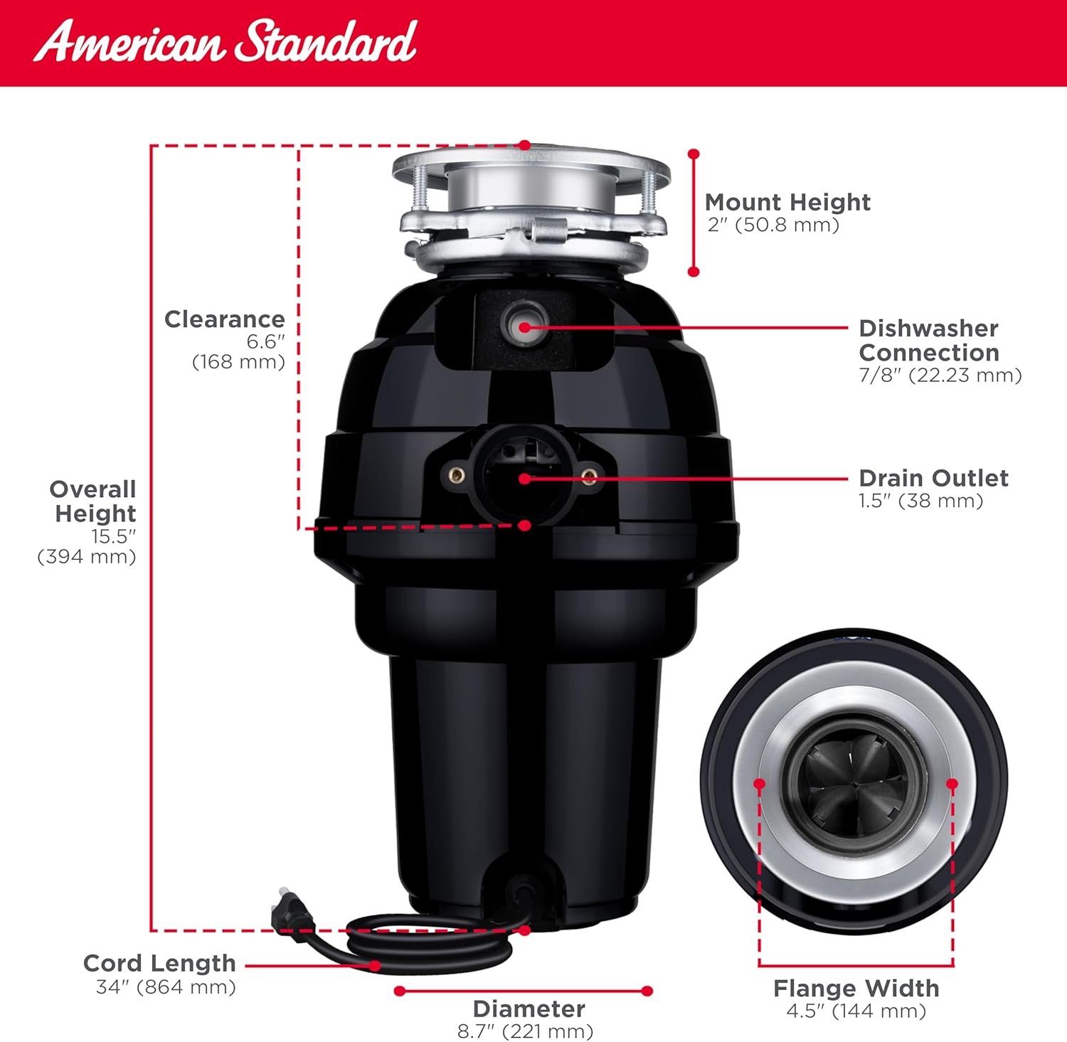 - VERSATILE GRINDING: American Standard garbage disposals handle a wide range of food waste, including soft & tough items, grinding them into fine particles that easily pass through your plumbing system and is safe for septic tanks. This makes it suitable for various kitchen needs