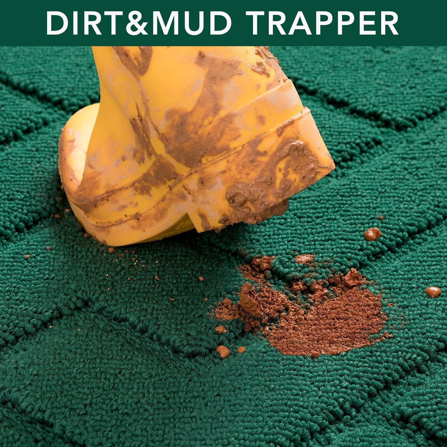 hicorfe Front Door Mat Outside Entrance,24"x35" Absorbent Muddy Dirt Resist Welcome Door Mats Outdoor Indoor,Stain and Fade Resistant,Non Slip Backing Entry Mat Doormat for Entryway (Evergreen)