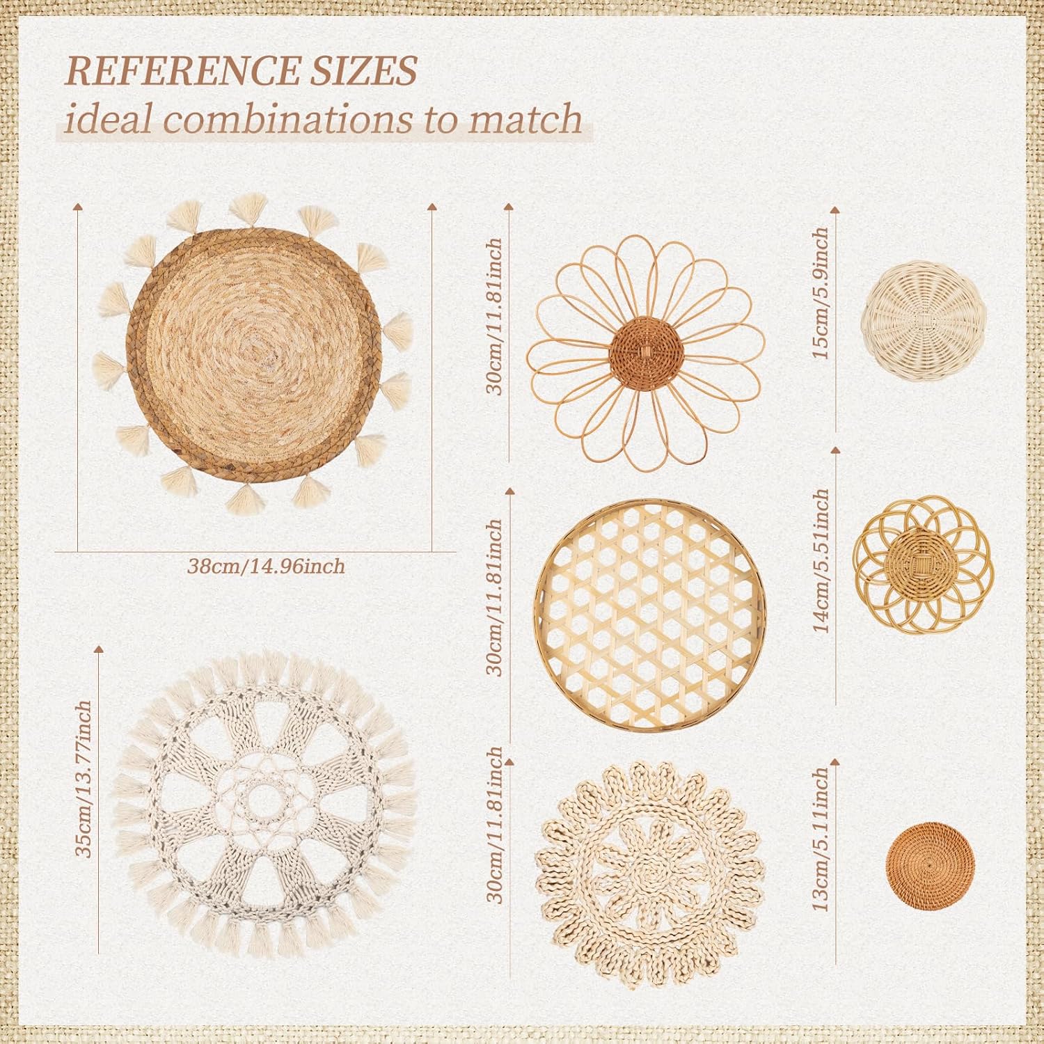 - 【Boho Atmosphere】: These wall decors feature a unique bohemian style, the flat round woven design, combined with tassels and elegant macrame details, adds a distinctive touch to any room perfect for enhancing the atmosphere of your gallery walls, fireplace, wedding backdrops, and bohemian themed parties.