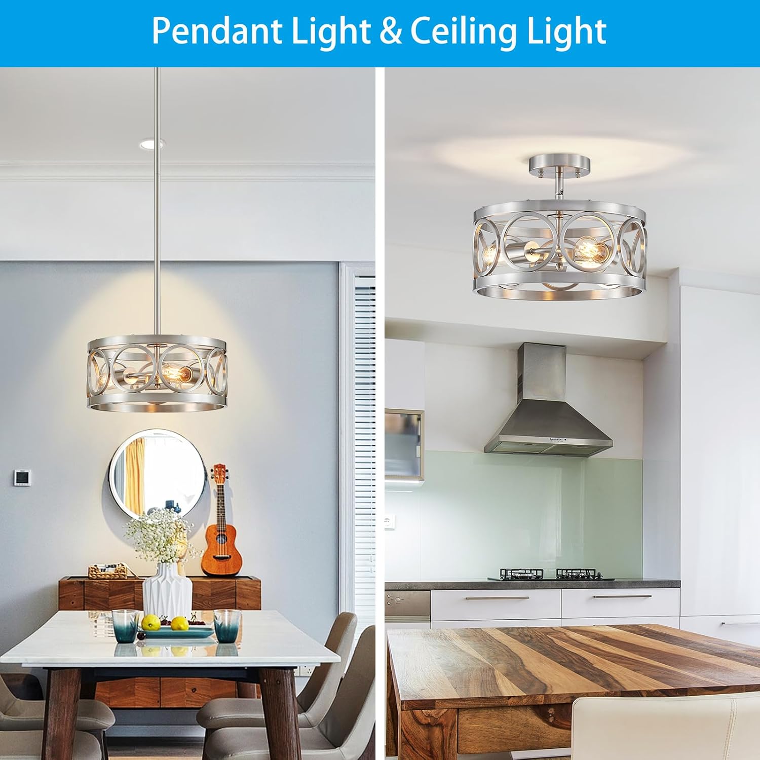 XINGQI Nickel Ceiling Light Adjustable Height Pendant Lighting Fixture 3-Light Metal Lamp 13" Rustic Round Lights for Dining Room Kitchen Bedroom Foyer Hallway