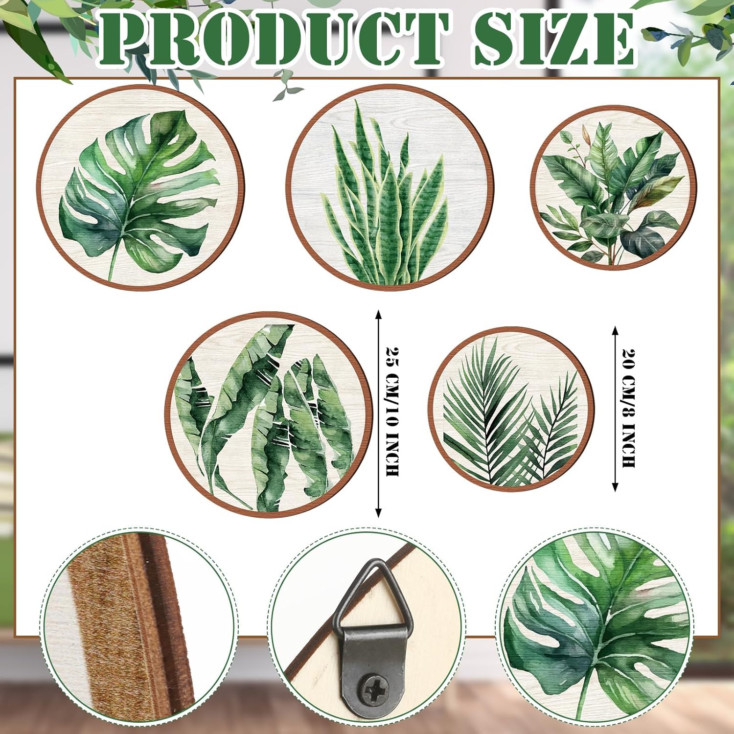 Qunclay 5 Pcs Wall Art Decor Wooden Living Room Wall Decor Bohemian Hanging Farmhouse Geometric 10'' and 8'' Aesthetic Wood Minimalist Posters for Bedroom(Leaves)