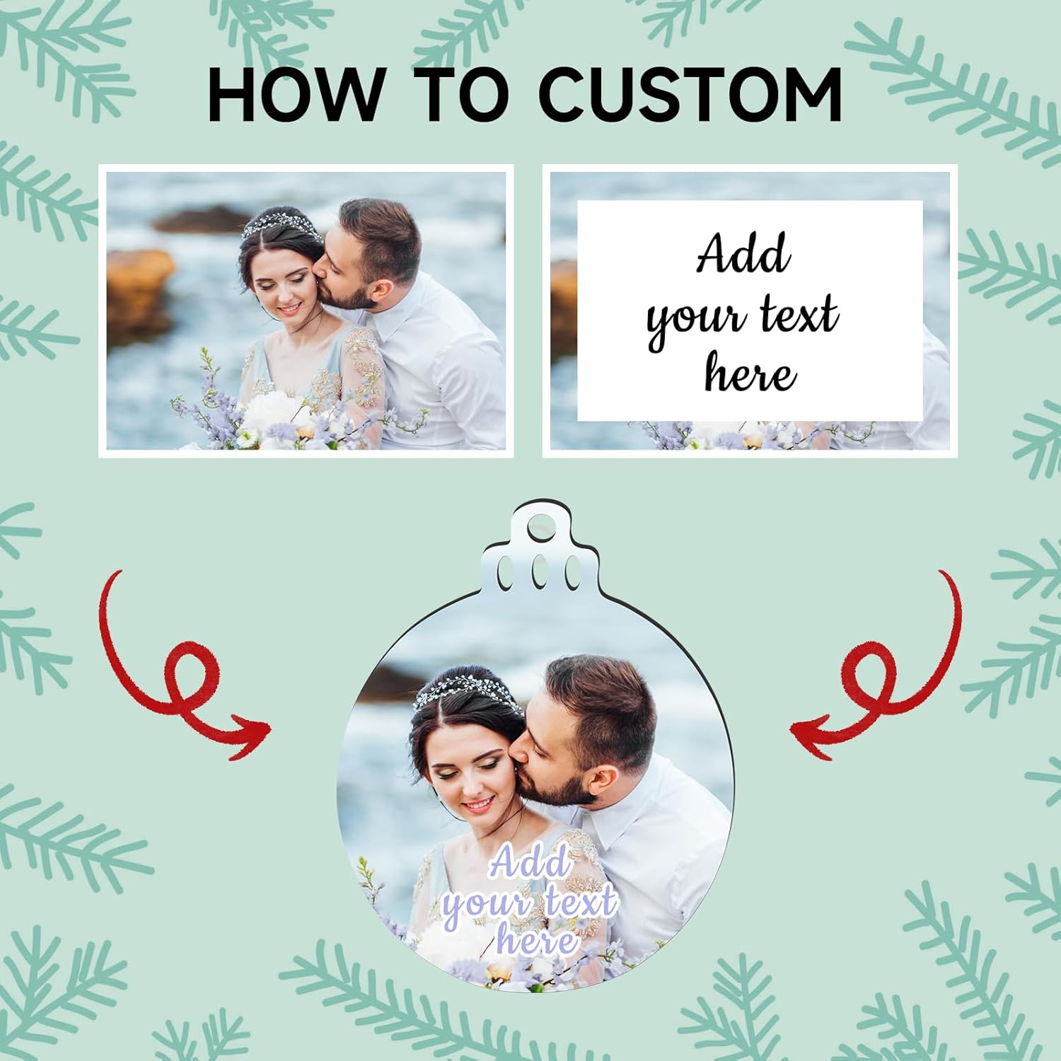 - 【Custom Photo Text Christmas Ornaments】Click on the " Customize Now " button to design your own Christmas ornament special with desired Photo, Picture, Logo, Text. Simply upload any photo, fit by the corners. Choose your font color, fill in the optional blank with your text. Our designers will do the rest.