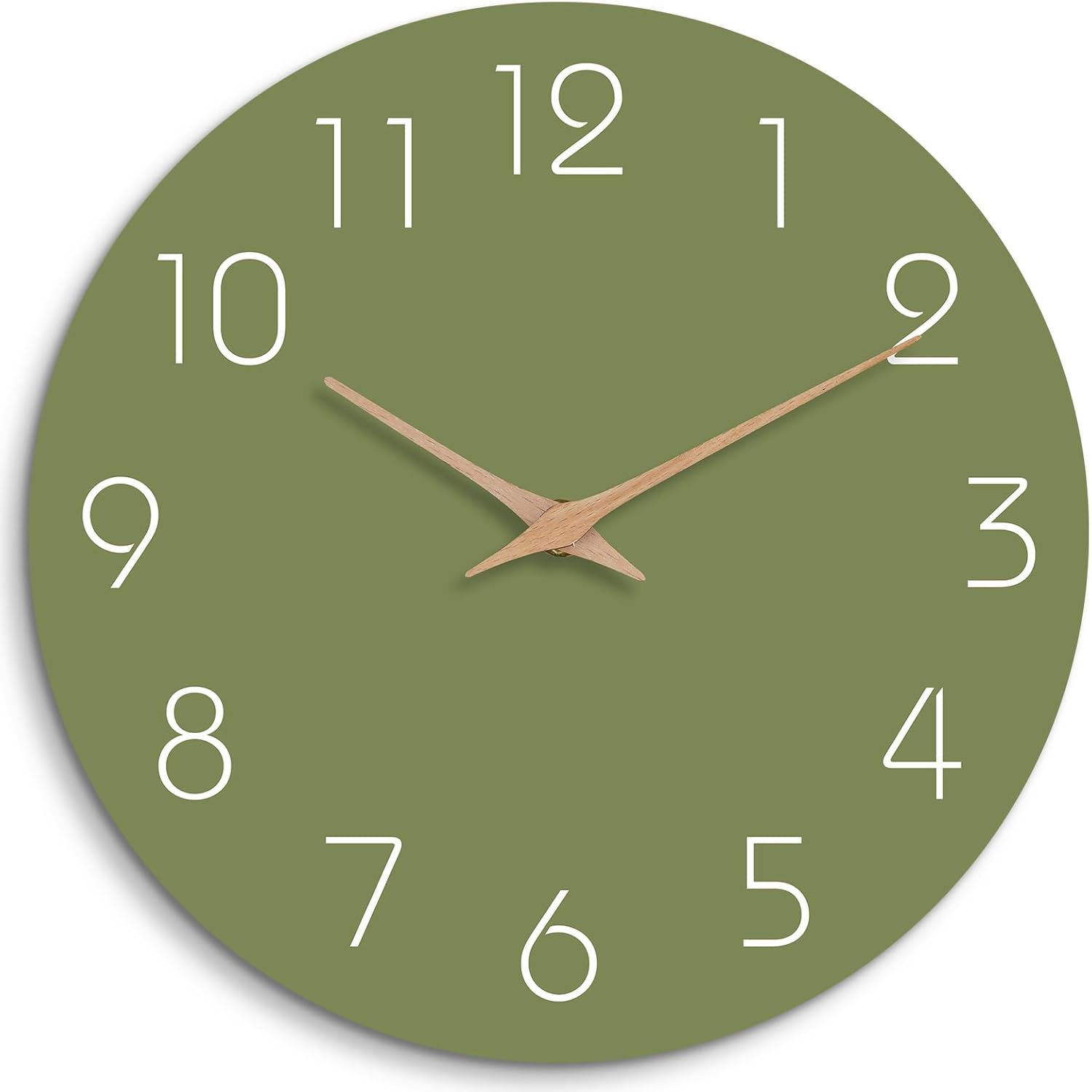 Mosewa Modern Wall Clock Silent Non Ticking 12 Inch Olive Green Battery Operated Simple Minimalist for Living Room Office Bedrooms Kitchen Home Decor