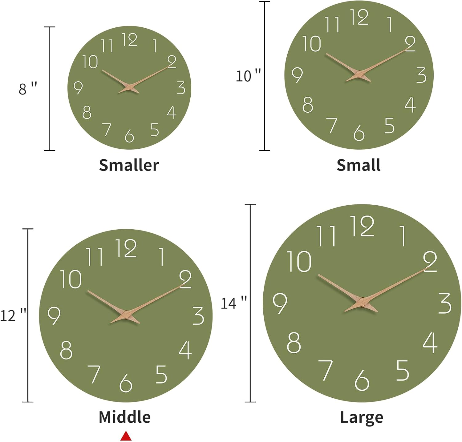 - 【SIMPLE DESIGN】- This modern simple 12 inch wall clock.Textured clock face, olive green matte surface, simple but not simple, stylish, meticulous and unassuming.