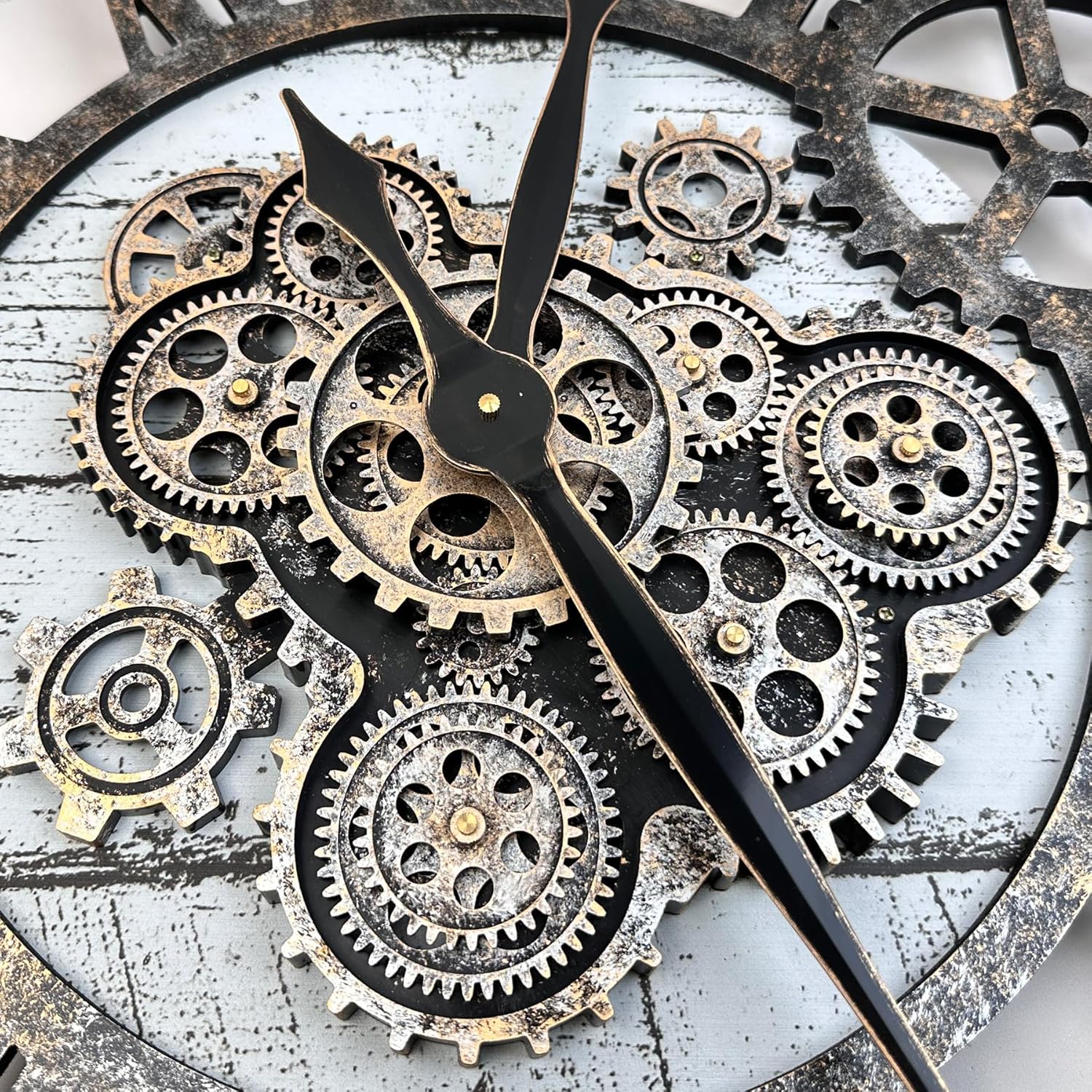 • WIDE APPLICATIONS: Oversized rustic wall clock is not only a timepiece, but also a piece of artwork, greatly adding charm to a room, like living room, farmhouse, fireplace, bedroom or dining room, studio, gallery, loft, cafe, bar, club, etc. Decorative wall clock will become an instant conversational piece for the moving gears and how cool it looks. Also awesome gifts for families or friends.