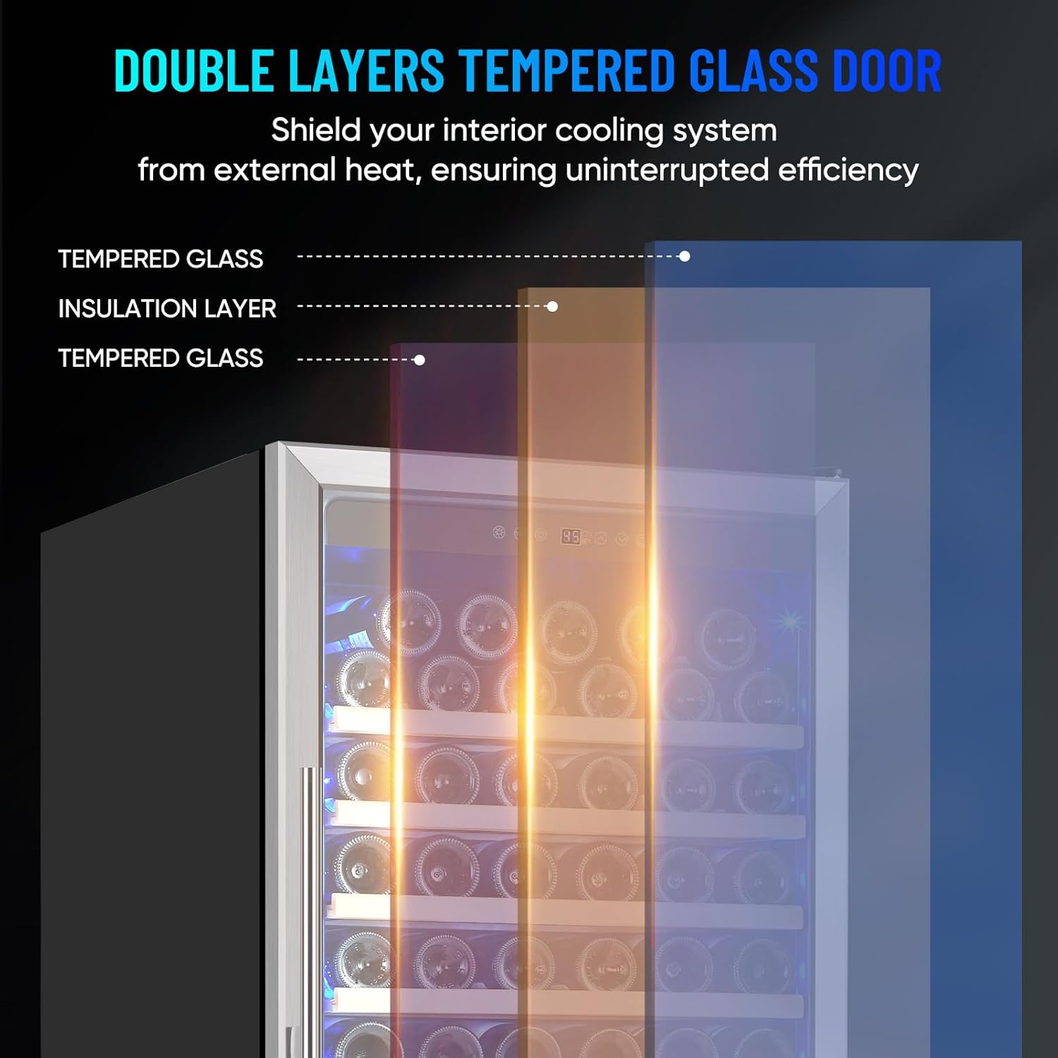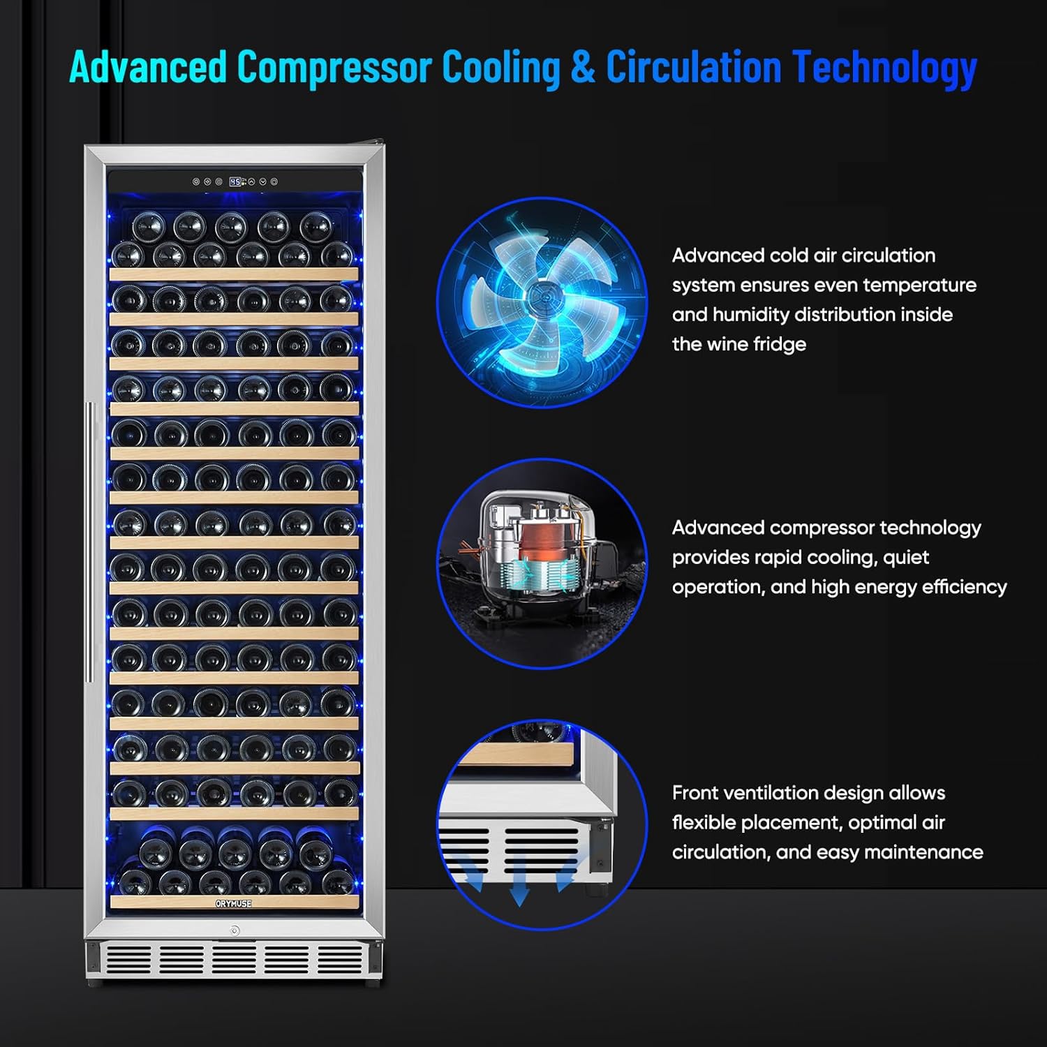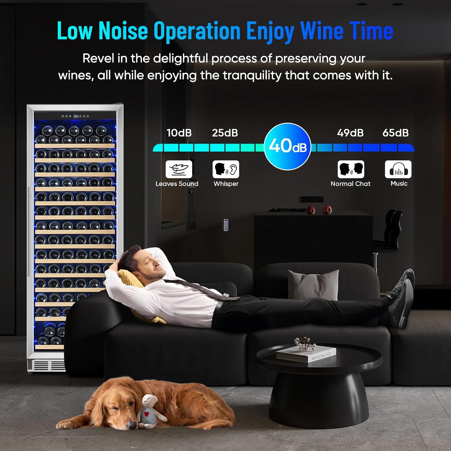 Freestanding 180 Bottle Wine Fridge - 24" Built-in Cooler with Upgraded Compressor Cooling and Intelligent Temperature Memory, Large Capacity Refrigerator