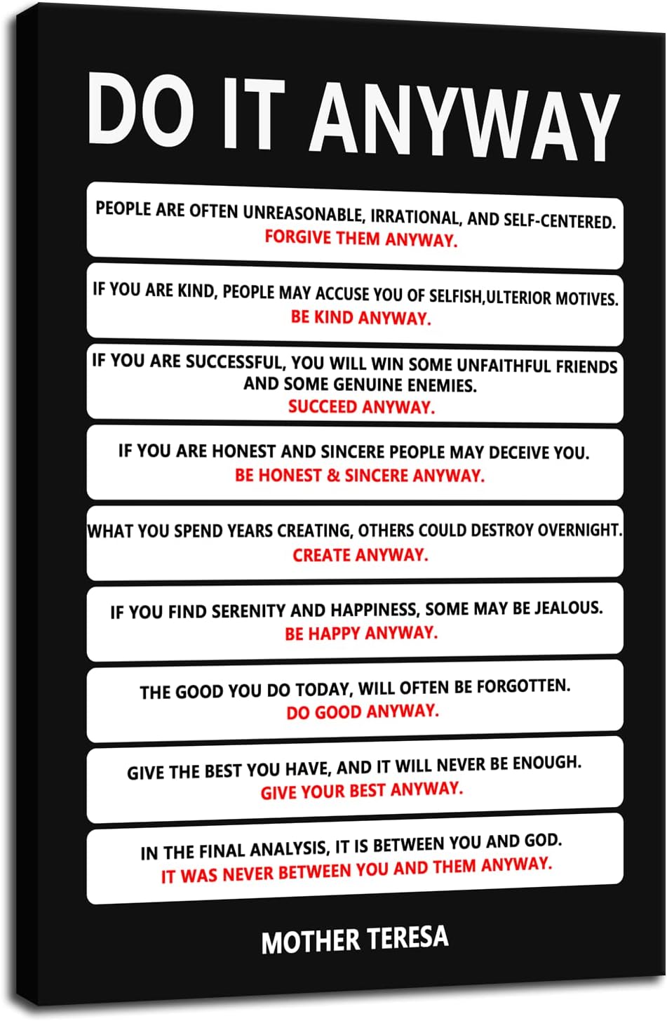 Motivational Wall Art Do It Anyway Inspirational Poster Mother Teresa Quote Canvas Prints Artwork for Office Living Room Modern Home Decor Painting Pictures Stretched and Framed [24''Wx 36''H]