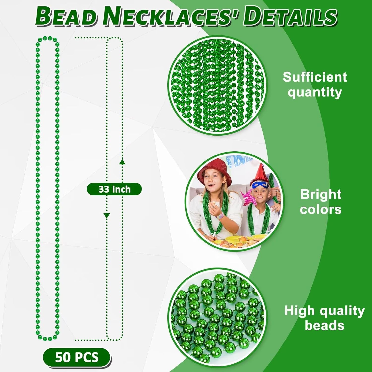 50PCS St Patricks Day Necklace, St. Patrick's Day Green Bead Necklace Accessories, Metallic Irish Saint Patrick Mardi Gras Necklaces Bulk, Parade Throw Accessories for Mardi Gras St. Patricks Party