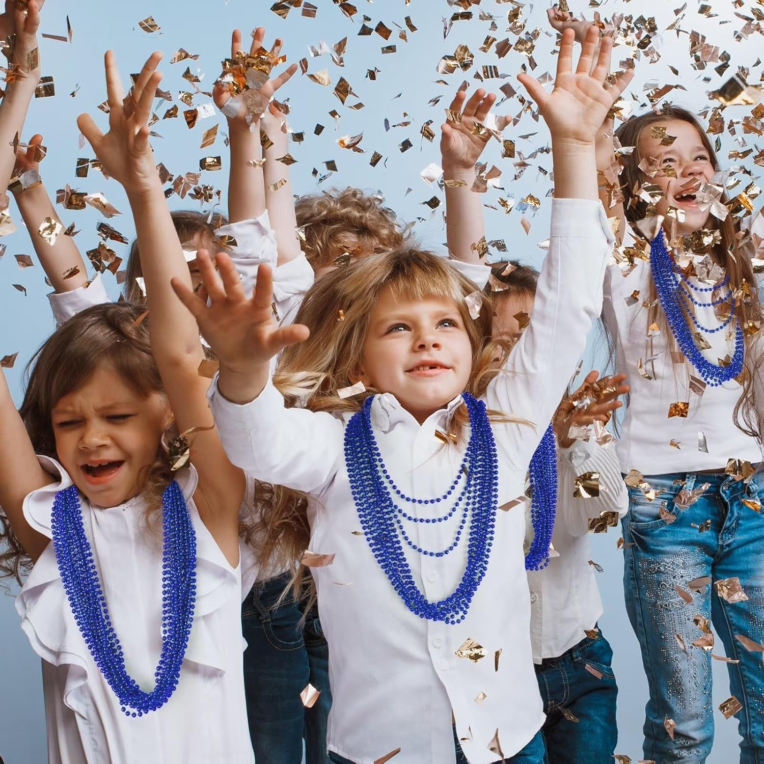 50PCS Christmas Bead Necklace, Blue Bead Necklaces Stuff, 33" Mardi Gras Beads Necklace Costume, Festival Parade Throw Accessories for Wedding Birthday Party Events Supplies Decorations