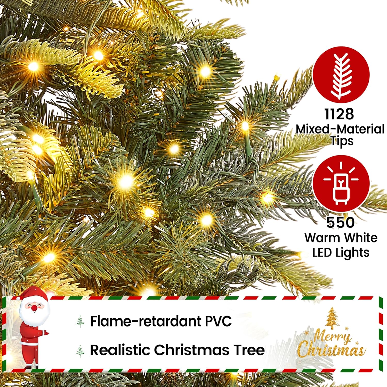 - Full-body Look: 1128 branch tips give the realistic Christmas tree a thick, lush silhouette with realistic volume. It creates a rich and inviting holiday centerpiece that brings warmth and festive spirit to your space