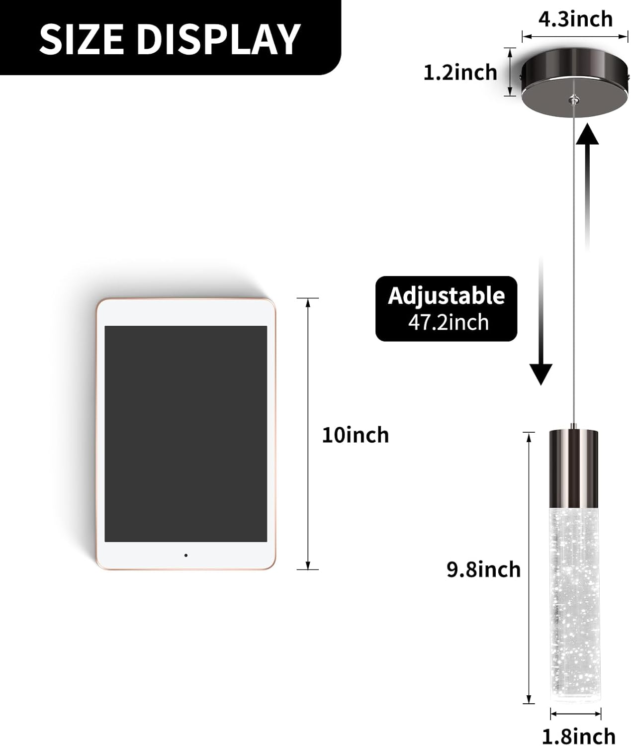 - 【Simple Modern style】:Modern black pendant light stainless steel sconces and cylindrical crystal bubble lamp posts will add more luxury, noble, and artistic atmosphere to your home, let your island light add a high-end atmosphere to your kitchen.