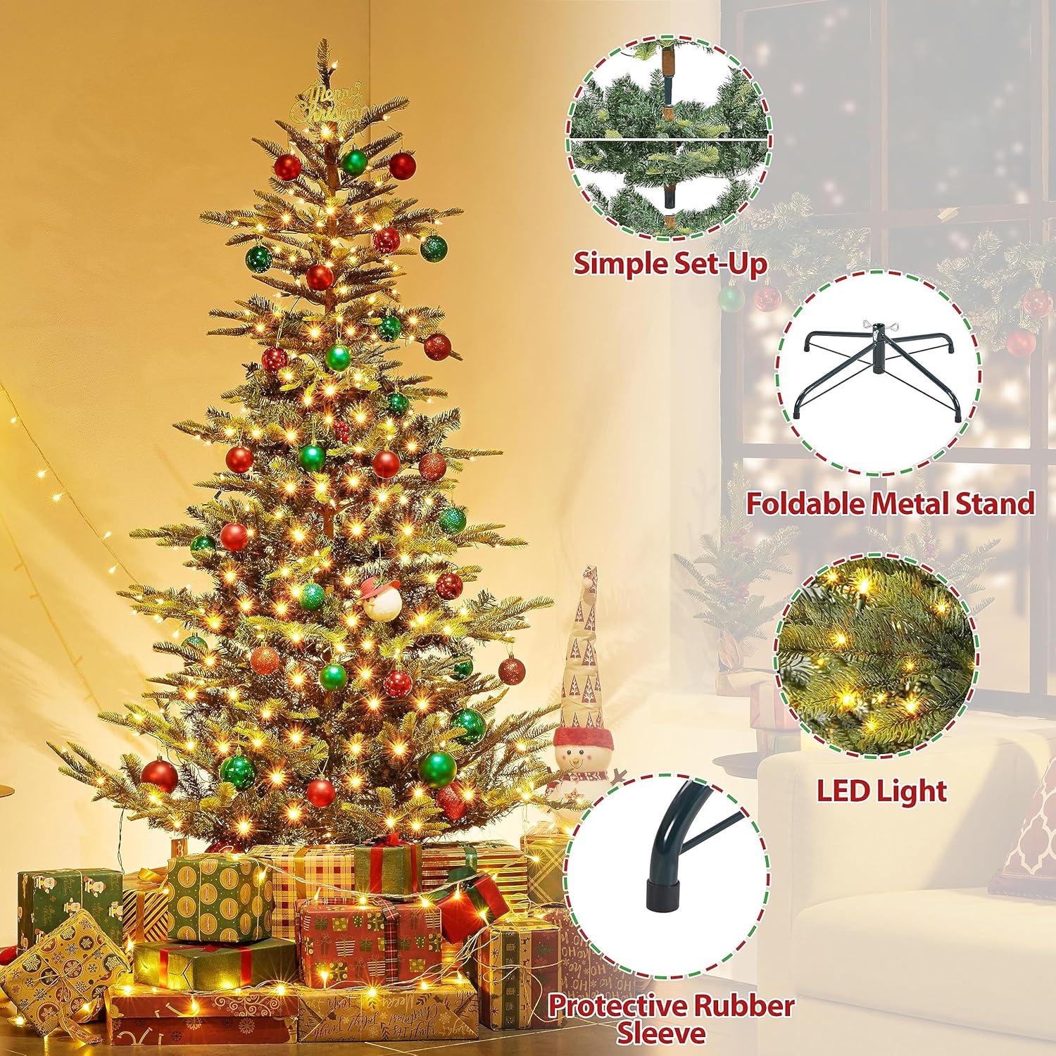 Yaheetech 6ft Pre-lit Aspen Fir Artificial Christmas Tree with 400 Incandescent Warm Lights Full Prelighted Xmas Tree w/828 Branch Tips & Foldable Stand for Home Holiday Decor, Green