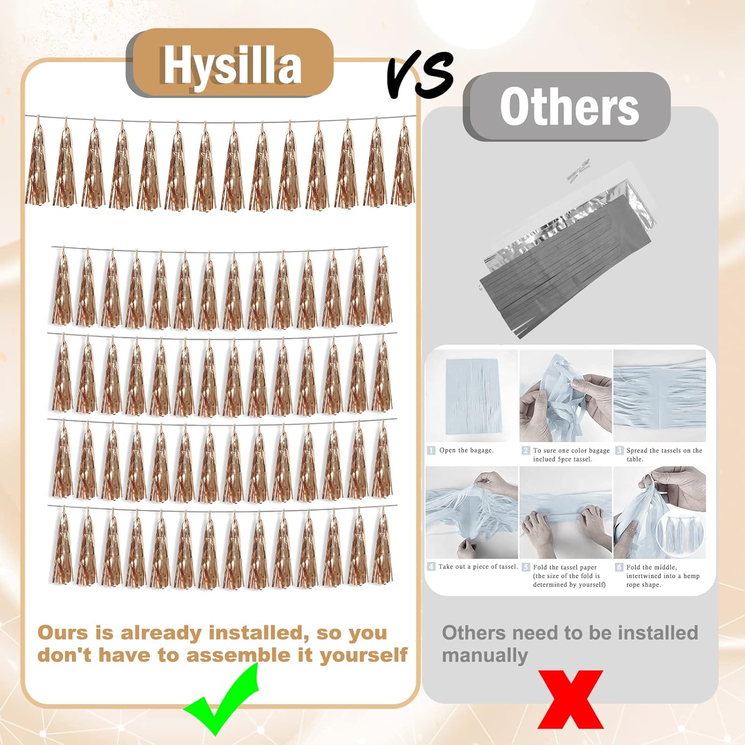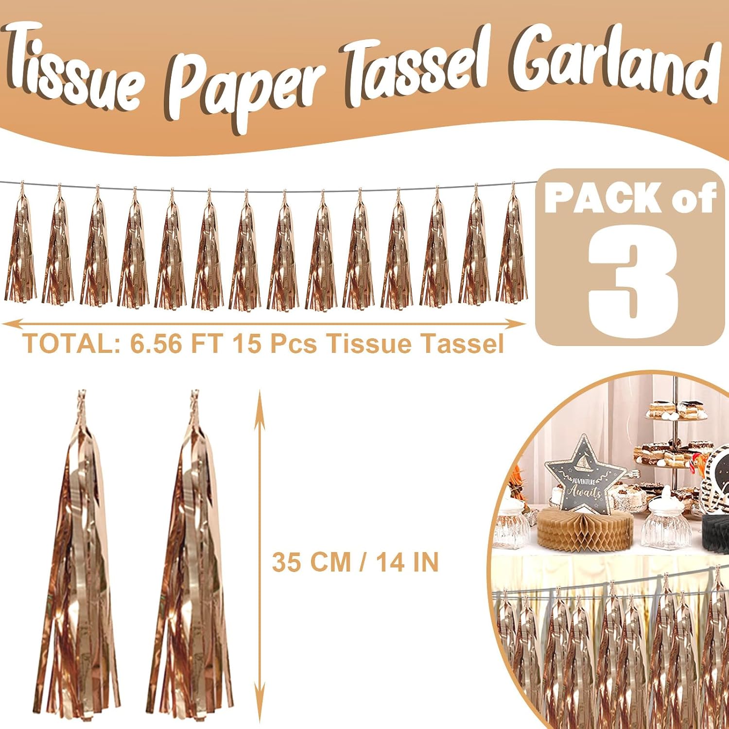 • 【Champagne gold Party Supplies Set】: The total length of the Champagne gold birthday tassels banner is 29.5 feet 45tassels, divided into 3 strips, each 9.8 feet long. Each banner contains 15 tassels, and each tassel measures 14 inches, for birthday decorations many occasions, and so on
