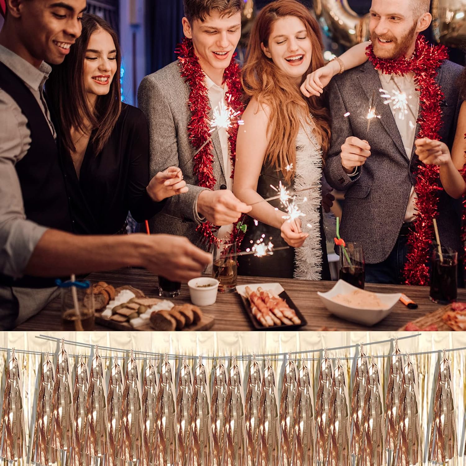 • 【Applicable Occasions】you can use the Champagne gold tinsel fringe garlands to decorate a classroom, the stage for a school program, a homecoming float, a wedding decoration, a birthday party, a baby shower, Halloween, Christmas, new year's Eve, a housewarming party, a bachelorette party, an anniversary Memorial, Hollywood Party, Independence Day, Carnival Party, Bridal Shower, Graduation and more.