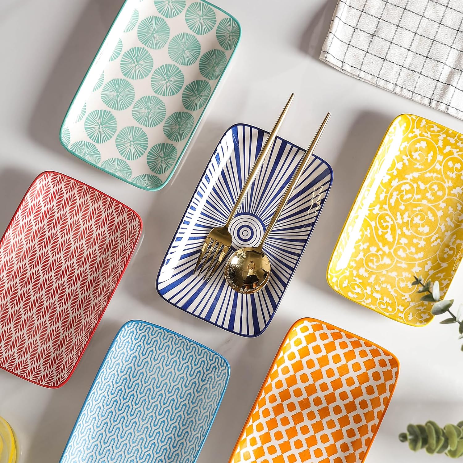 Selamica Ceramic Rectangular Salad Plates Set, Dinner Plate 9.4 Inch Dessert Plates for Party Entertaining, Small Serving Plates for Appetizers, Sushi, Fruit, Set of 4, Assorted Colors