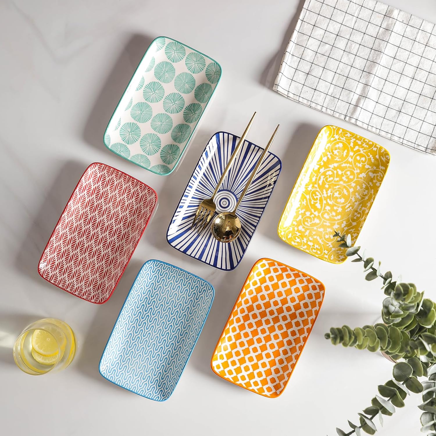 Selamica Ceramic Rectangular Salad Plates Set of 4, Small Serving Plates for Appetizers, Sushi, Fruit, Assorted Colors