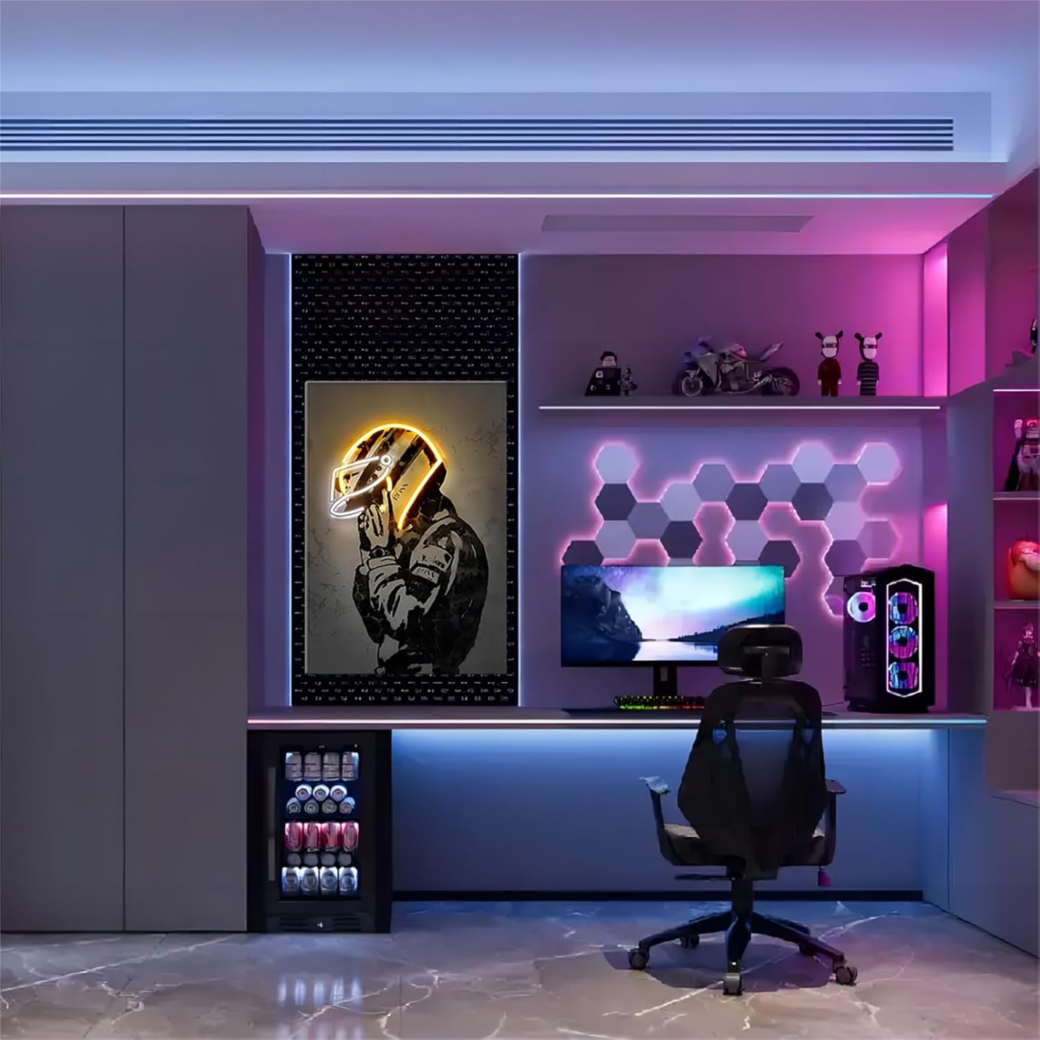 - NEON POSTER WALL PRINT: Racer print measures 16x24 inches (40x60 cm) and is hand stretched on a pine frame. Perfect for decorating sports rooms, gyms and game rooms.