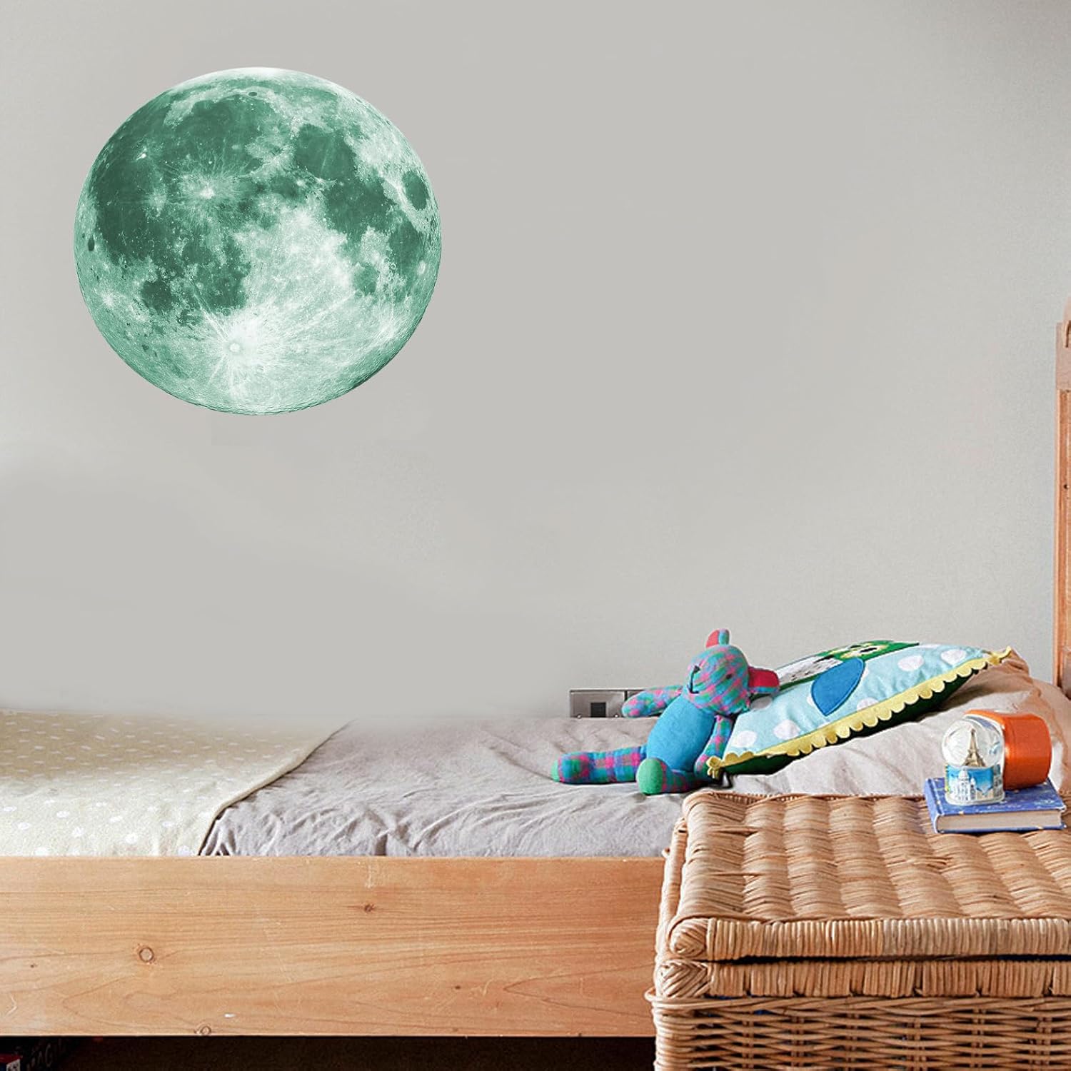 - These light-up moon wall decals are made of high quality pvc material, green and luminous; they are waterproof, wear-resistant, colorfast, non-breakable, wrinkle-resistant, practical and easy to tear, so you can use them with confidence.