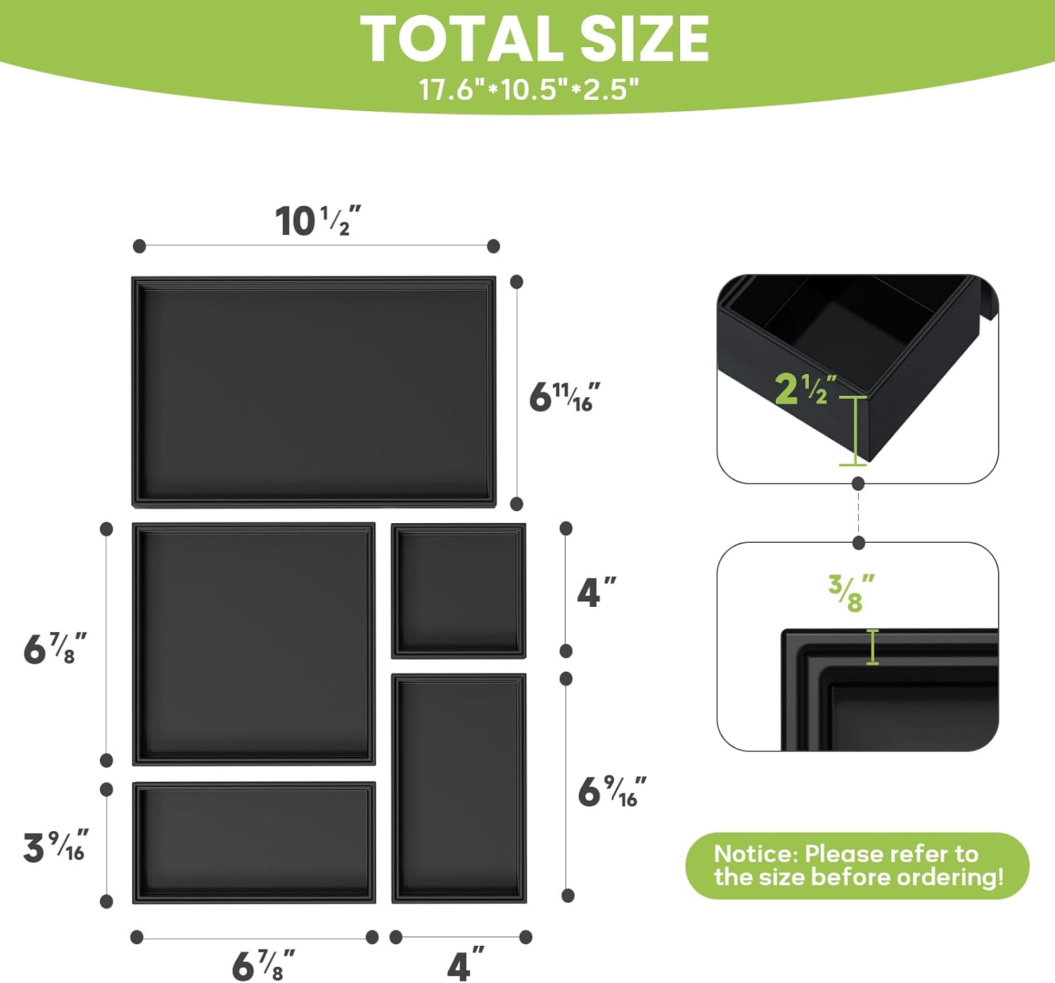 Bamboo Drawer Organizer Set, 5 PCS Multi-use Varied Sizes Junk Drawer Organizer Kitchen Storage Box for Office, Home, Bedroom, Bathroom, Black