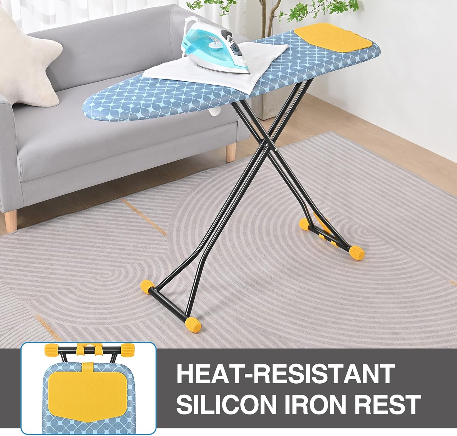 - Exquisite Design: Heat-resistant silicone iron mat provides a secure placement for the iron and safeguards the surface from damage caused by the high temperatures of the iron.Cleverly leg design increases the contact area between the ironing board and the ground, ensuring a more stable ironing experience.