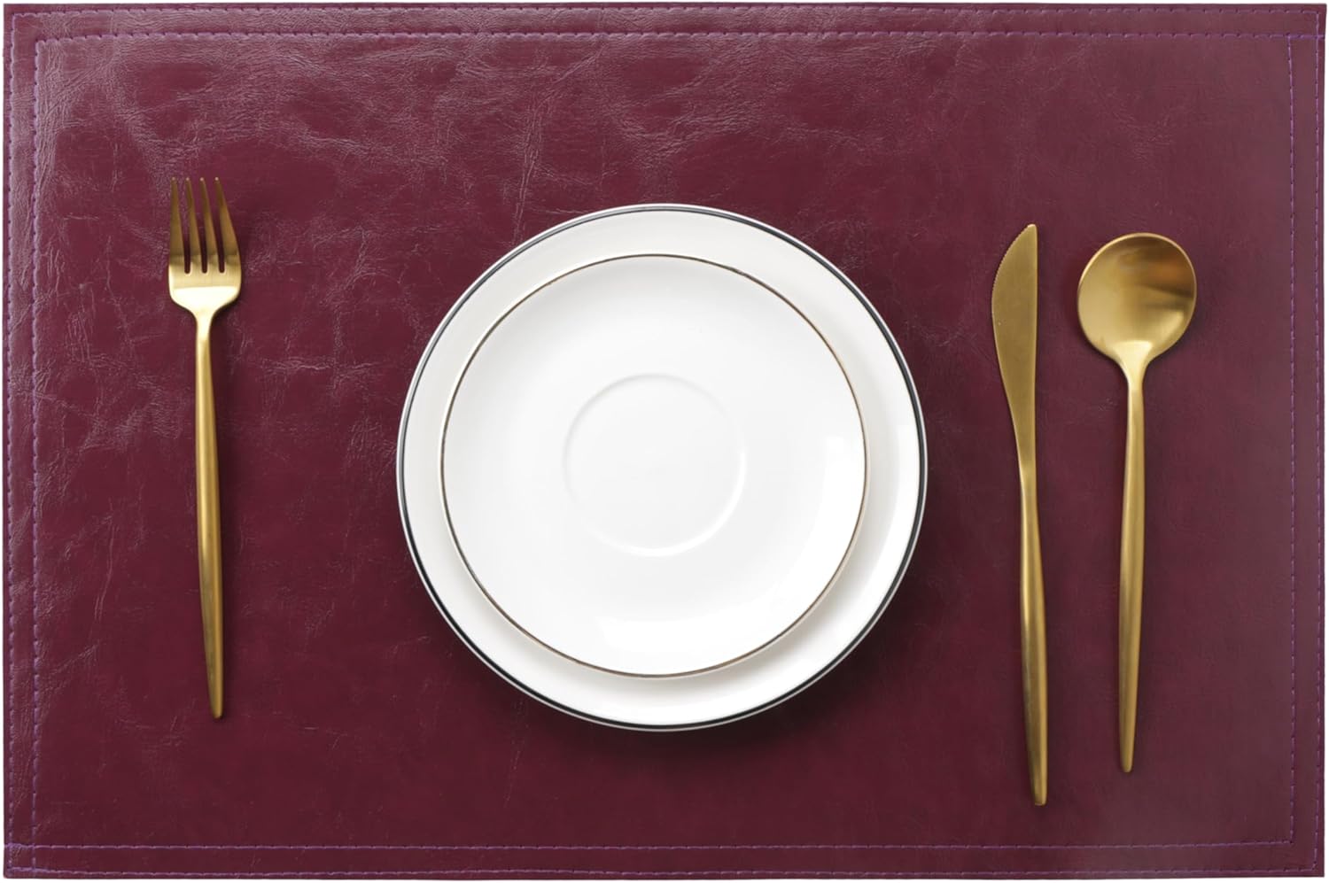Waterproof PU Placemats, Faux Leather Dining Table Mat, Set of 6, Easy to Wipe Off Scrub Vinyl Mat, Heat & Stain Resistant for Office Conference Table, Home Decor