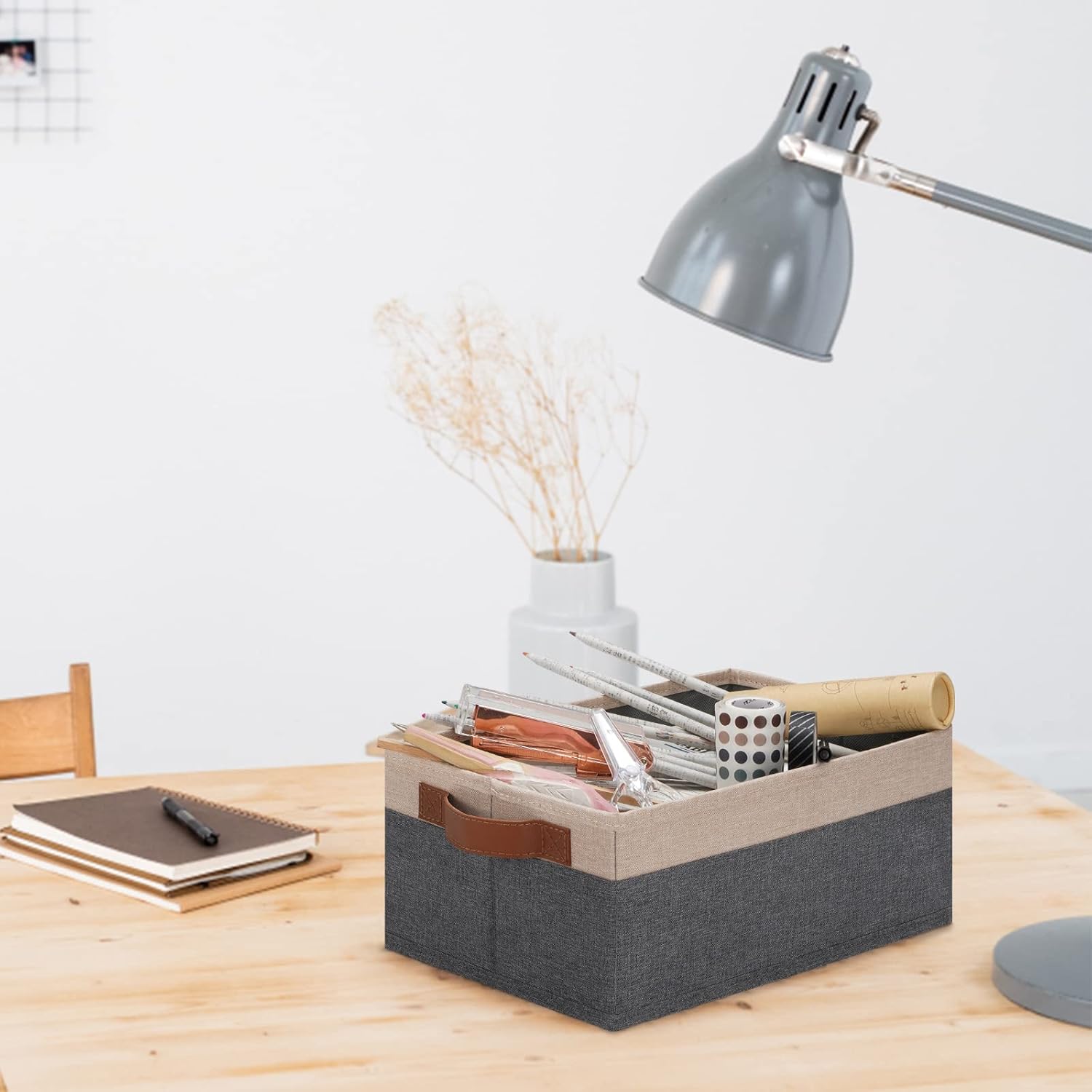- 👍【QUALITY MATERIAL】Storage baskets for shelves are made of high-quality cationic fabric and polyester cotton fabric, and the inner layer is made of non-woven fabric, which is odorless, durable and strong. Classic faux leather handles that adds a comfortable touch and provides a strong and comfort grip to pull and move. Fabric storage bins are easy to clean, just wipe with a damp sponge or cloth.