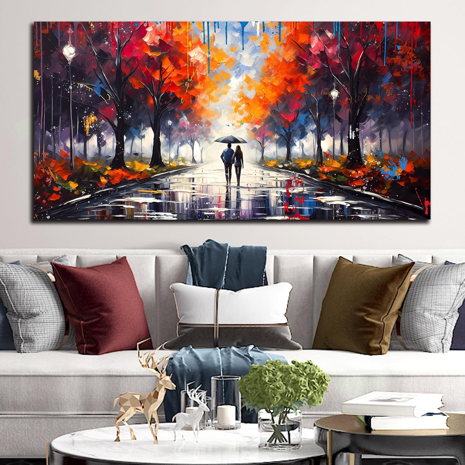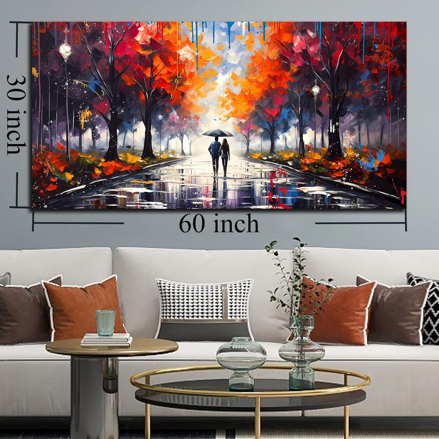 Large Canvas Wall Art for Living Room Bedroom Couple Walking in the Rain Picture Graffiti Red Tree Canvas Prints Framed Home Decor Size 30x60