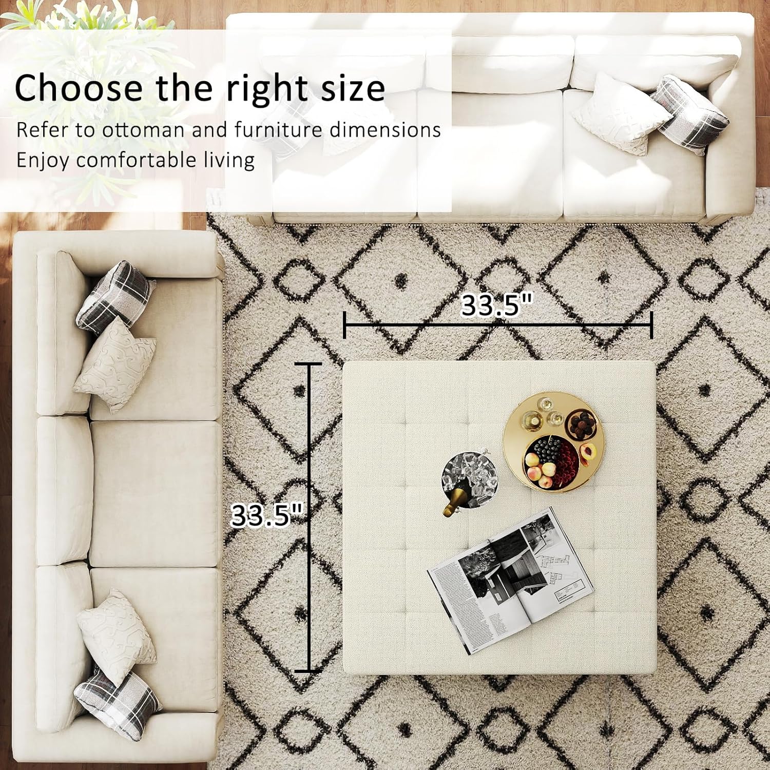 - Ottoman Coffee Table Size๏ผ33.5" Wx33.5" Dx18.5" H. Easy to bear 400 pounds