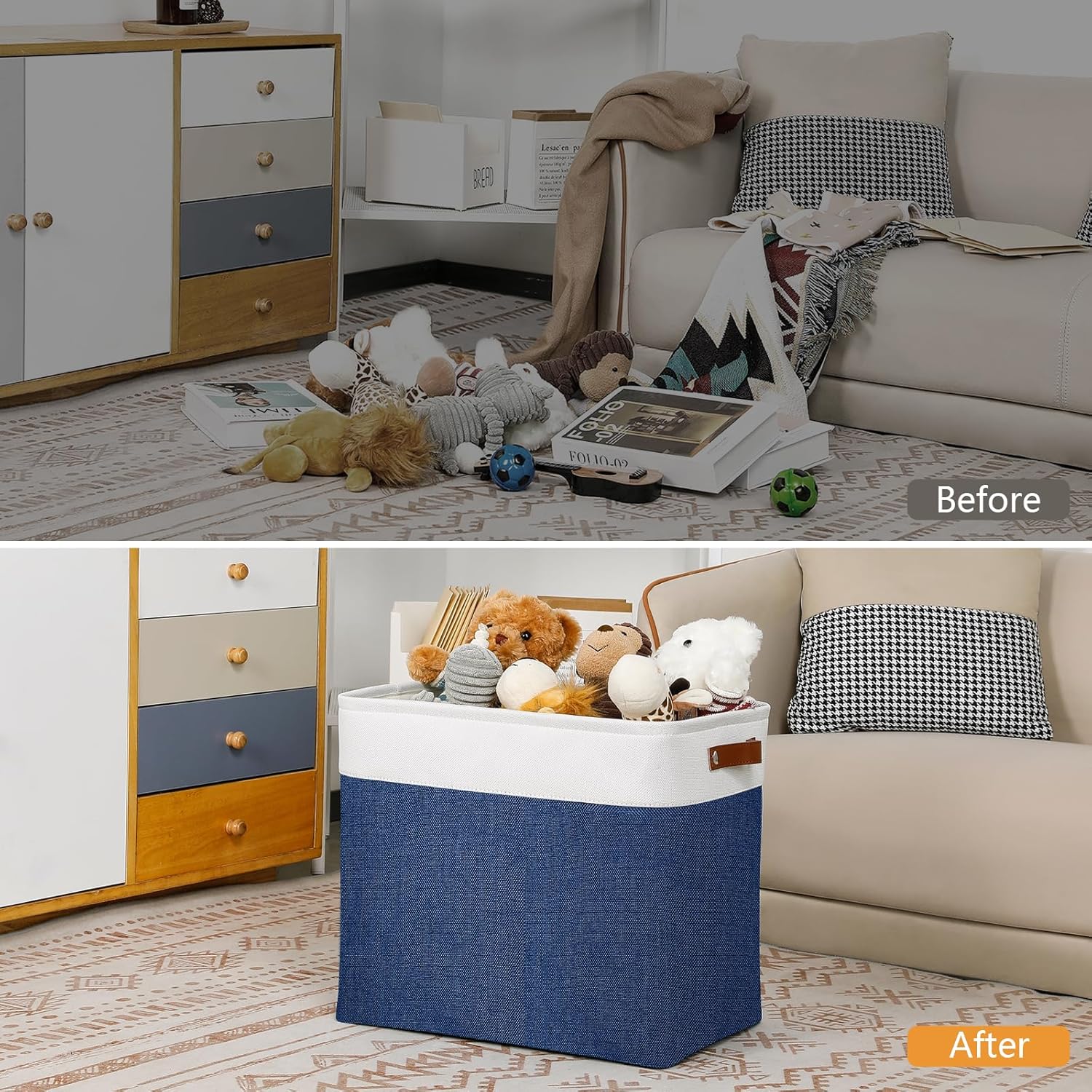 DULLEMELO 51L Large Baskets for Storage, Large Rectangular Baskets for Shelves [3 Pack], Blanket Basket Dog Toy Basket for Organizing Closet, Nursery, Clothes,Toys (White&Blue)