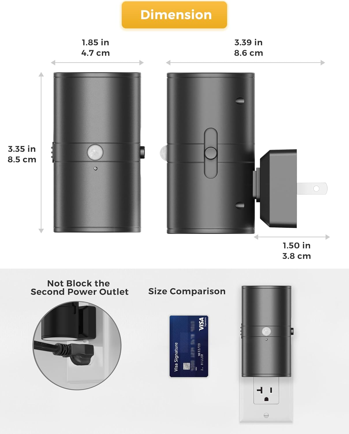 - Energy Efficiency -- It strikes a balance between premium performance and low energy consumption. The maximum power consumption of the led plug in motion sensor night light is only 1W, which helps save electricity bills and protect the environment.