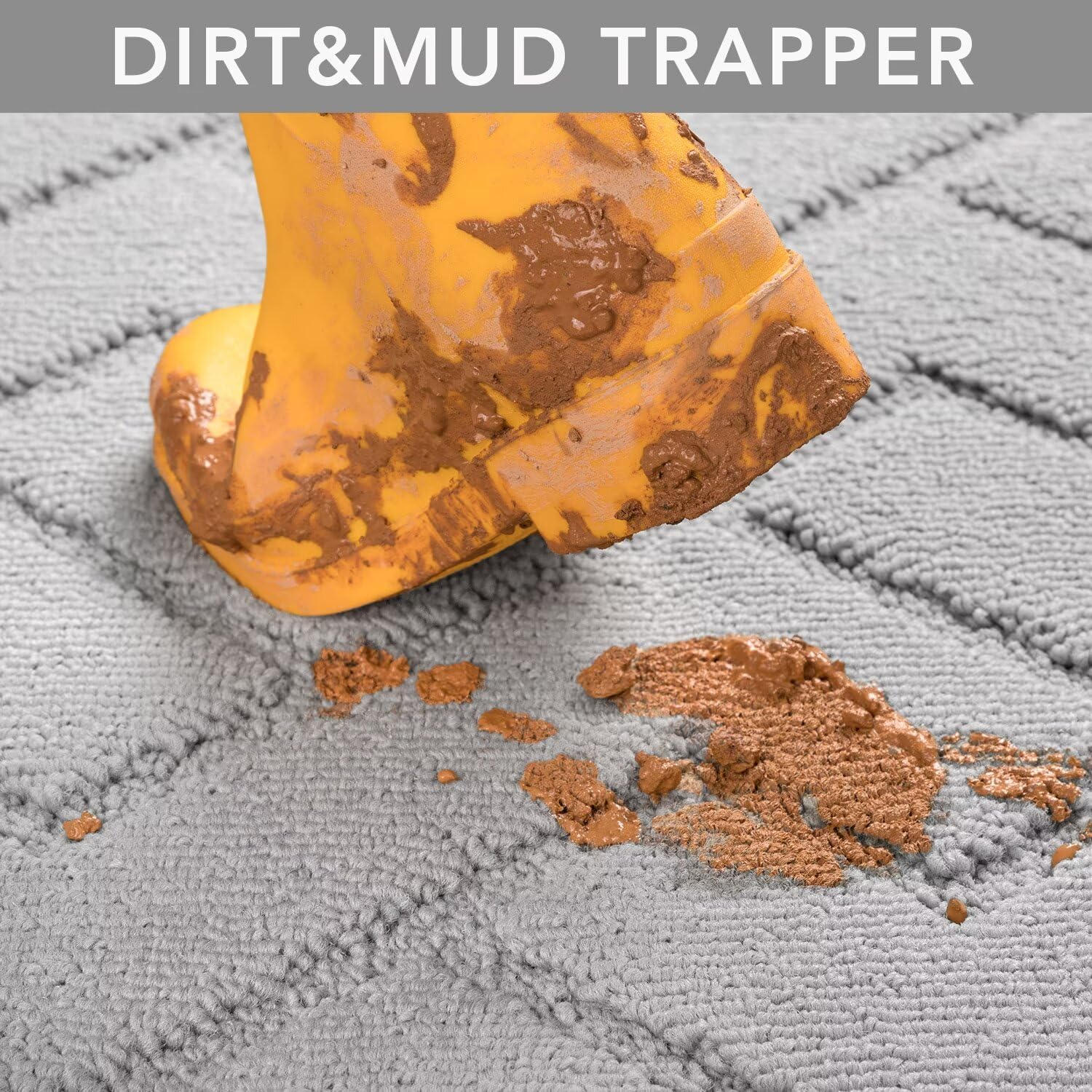 hicorfe Front Door Mat Outside Entrance,32"x40" Absorbent Muddy Dirt Resist Welcome Door Mats Outdoor Indoor,Stain and Fade Resistant,Non Slip Backing Entry Mat Doormat for Entryway(Light Grey)