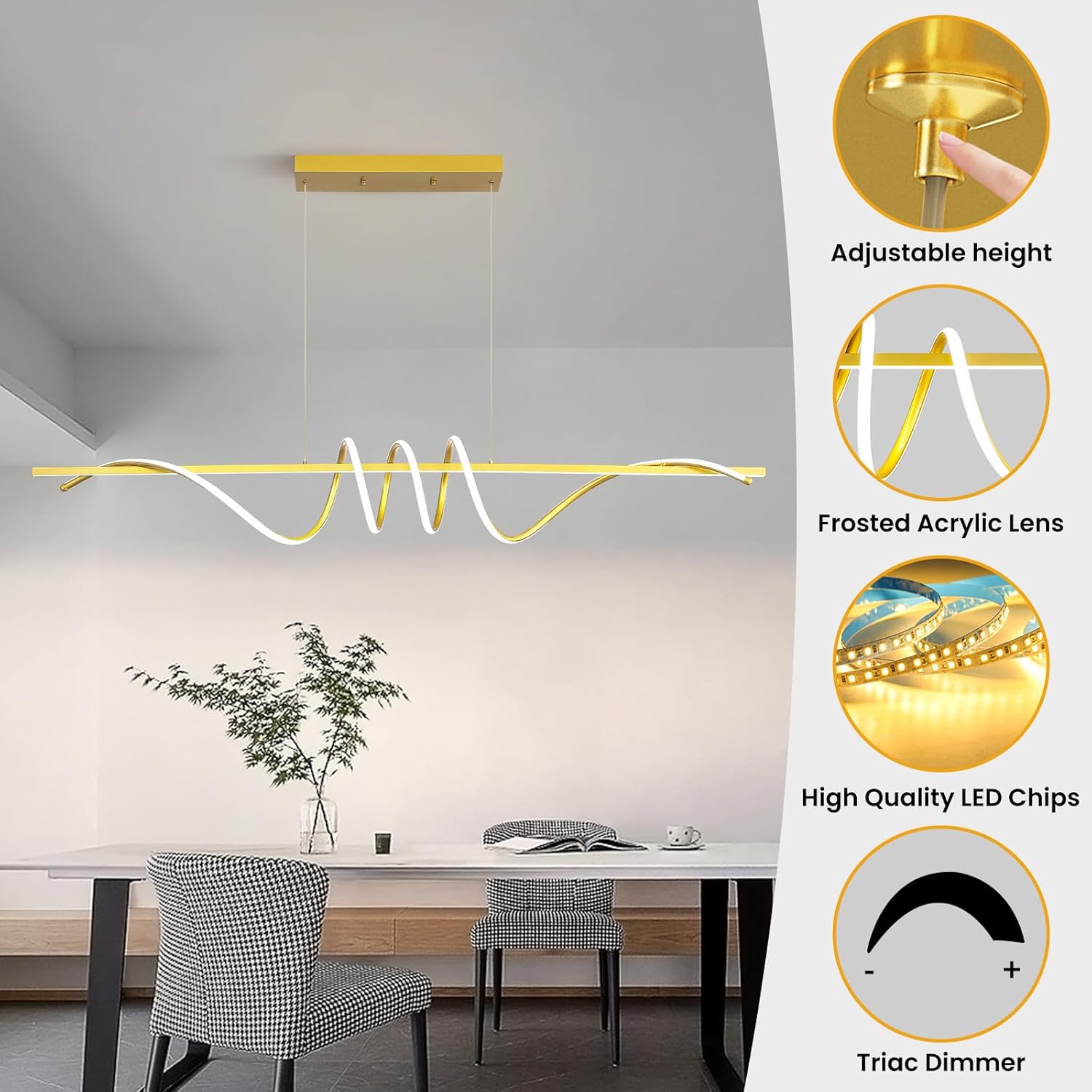 - LED Light Source : - The ceiling dining room light consists of 2853 high quality lamp beads, high brightness, anti-flicker, eye protection, energy saving and environmental protection, average service life of 50,000 hours, no UV and IR radiation, eye protection. Comfortable to use.