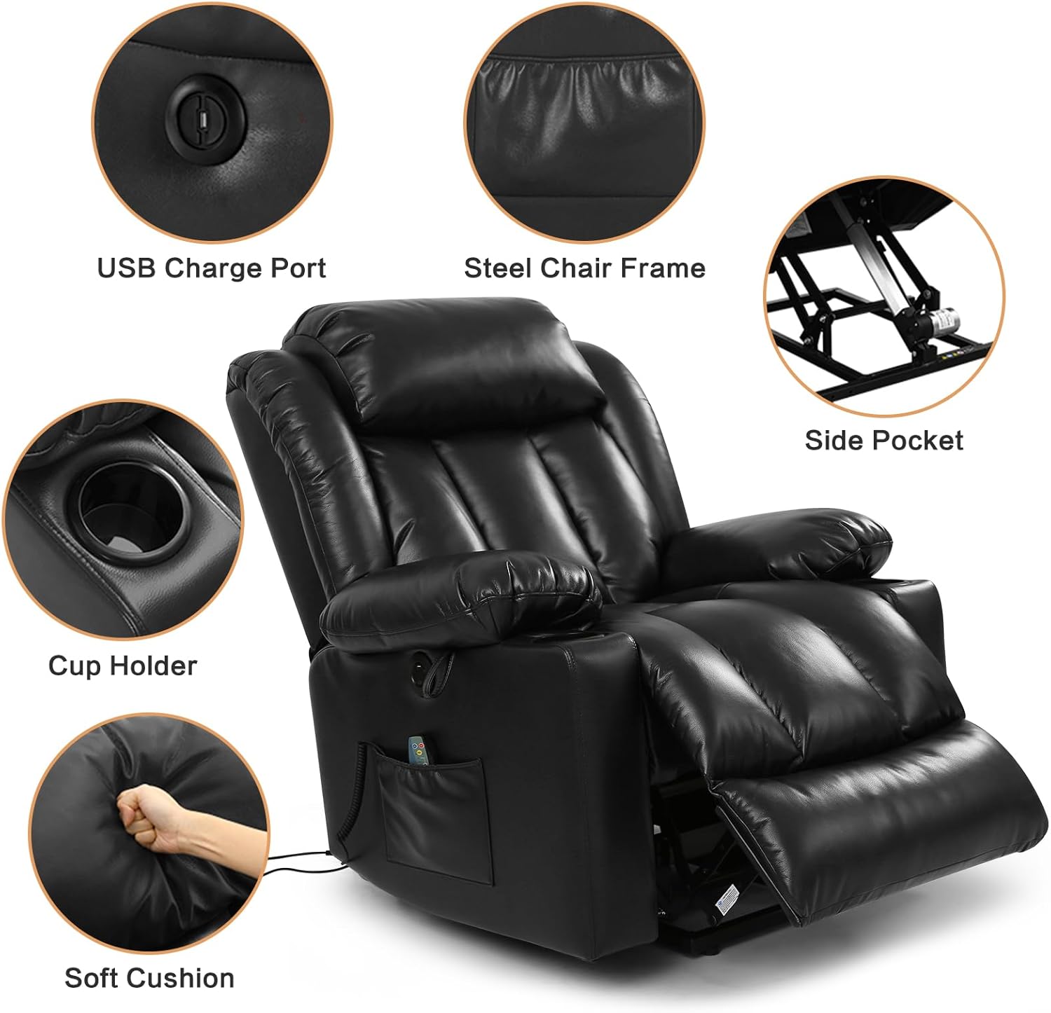- [Additional Features] - This chair has many wonderful functions. Charge your electronic devices anytime with the 2 USB charge ports while keeping small items close at hand with the pockets on both sides of the armrest. The 2 cup holders cater to your daily beverage needs. The extension footrest allows you to stretch and fully relax while indulging in activities like reading, sleeping, or watching TV. Control all functions of the chair with the convenience of the included remote control.