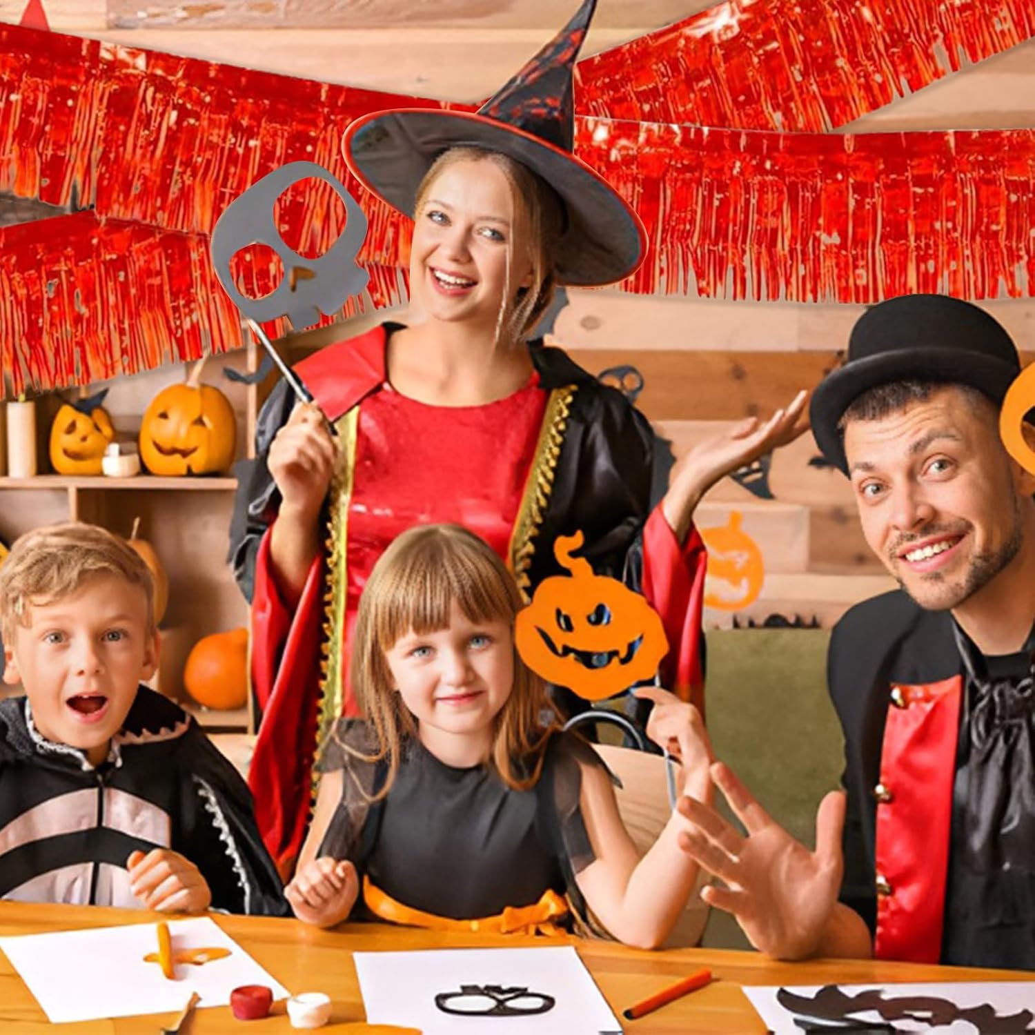 Red Foil Fringe Garland 10FT 2packs, Metallic Foil Tinsel Fringe Banners for Parade Float Decorations Wedding, Birthday Party Graduation (Two Red)