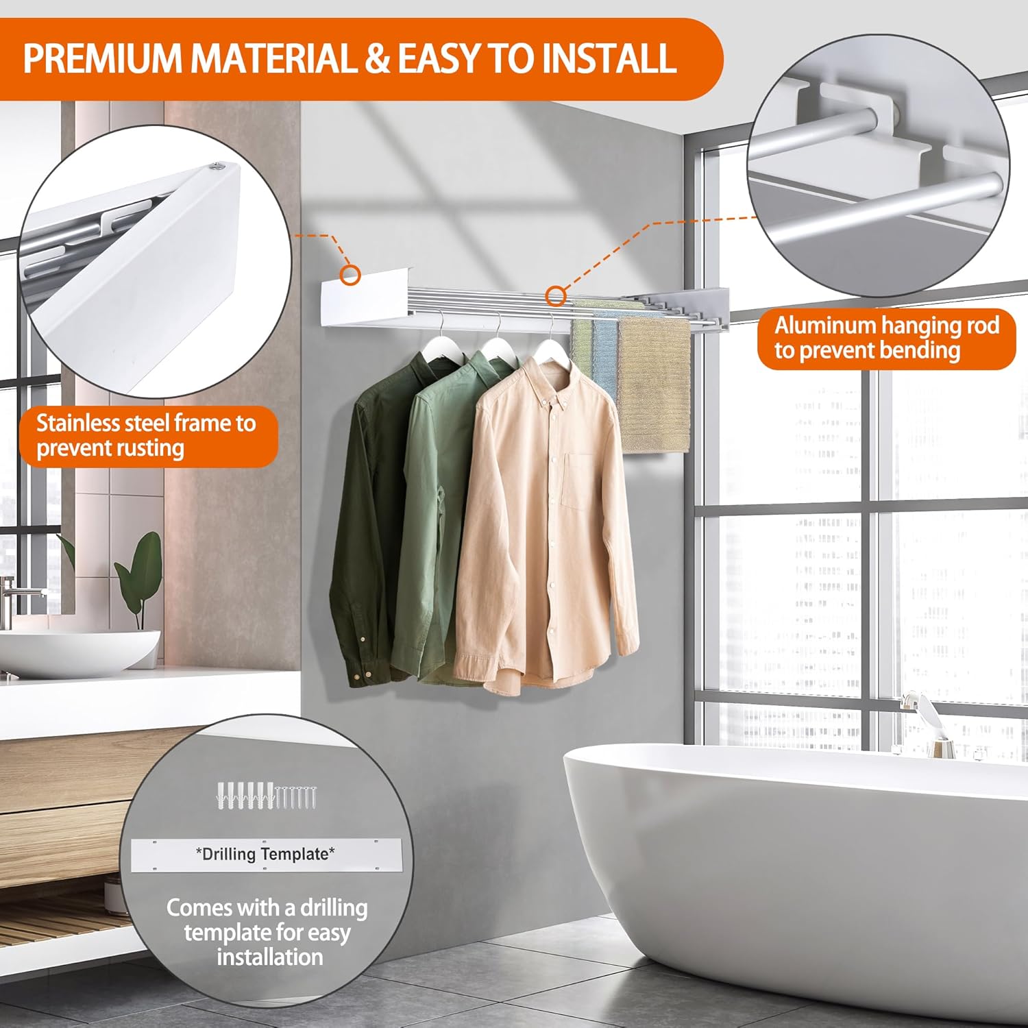 - Space-Saving Design - This laundry drying rack is adopted with collapsible design, so you can fold it when not in use; The compact and retractable wall-mounted design maximizes limited space, adds elegance to your space, and can help free up your floor space; Unfolded Size: 31.5"(L) x 15.7"(D) x 3.9"(H); Folded Size: 31.5"(L) x 1.0"(D) x 3.9"(H)