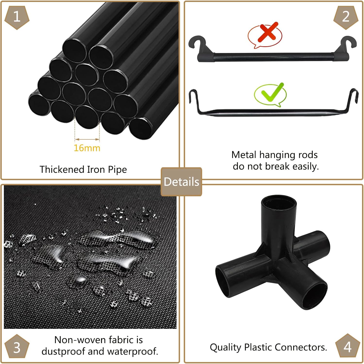 - 【Metal Frame,High Bearing Capacity】Thickened iron pipe,strengthened plastic connector,greatly improve the bearing capacity of the wardrobe,please rest assured to use.