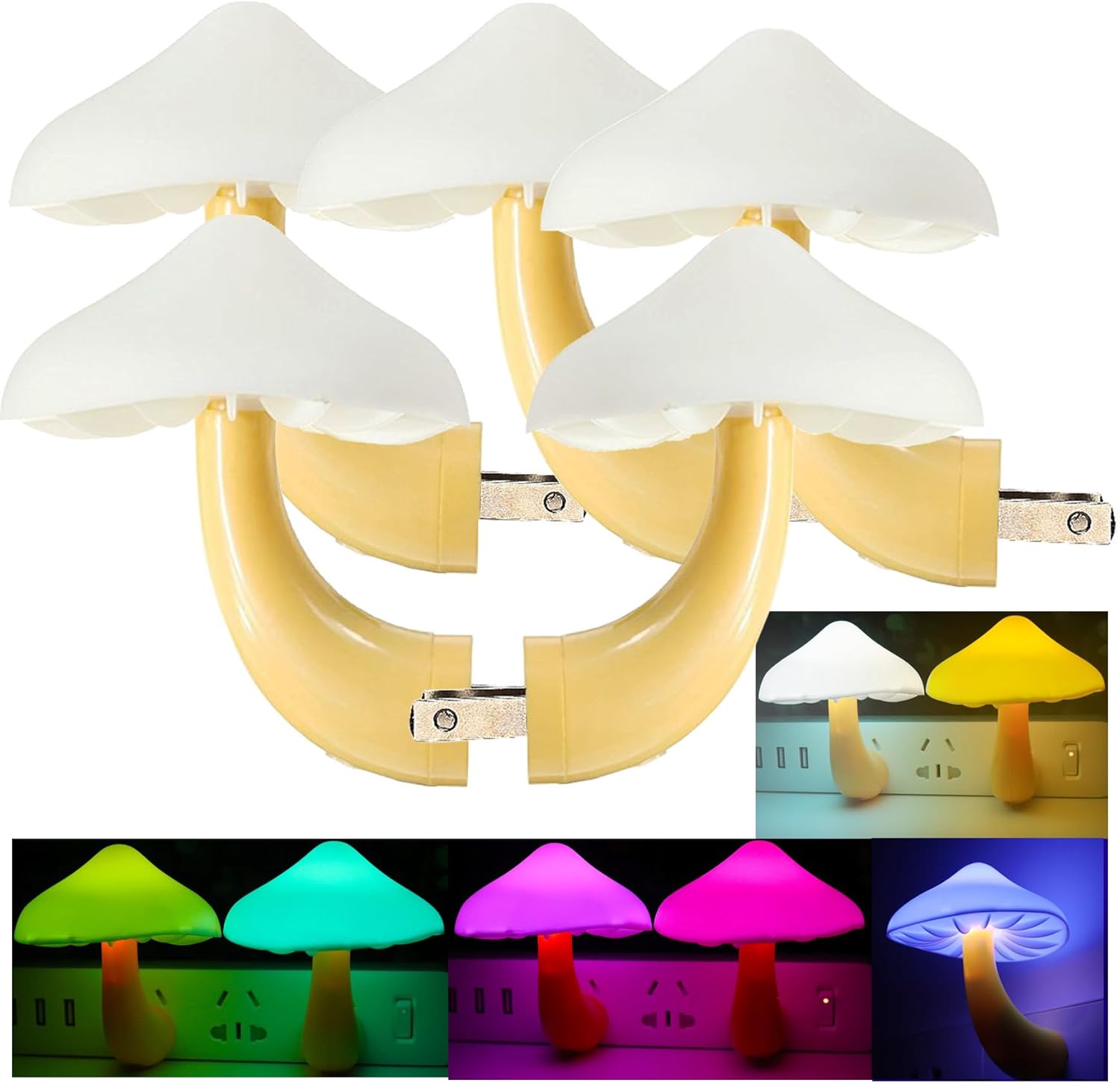 AUSAYE 5Pack Sensor LED Night Light Plug in Lamp 7 Color Changing Mushroom Light Cute Night Lights for Adults Kids NightLight Bedroom,Bathroom,Toilet,Hallway,Stairs,Kitchen,Basement