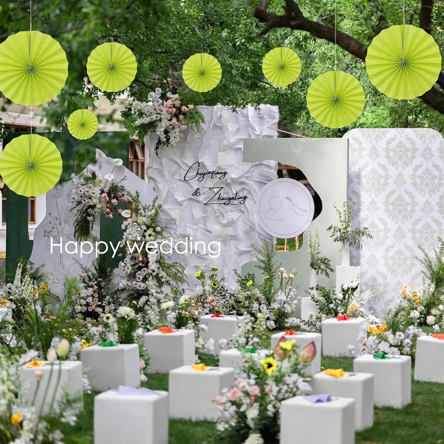 Green Graduation Party Decor,Tropical Party Decorations,Emerald Green Party Decorations,Hawaiian Themed Party Decorations,12in Hanging Paper Fans 30 Color DIY Set (Clear Green)