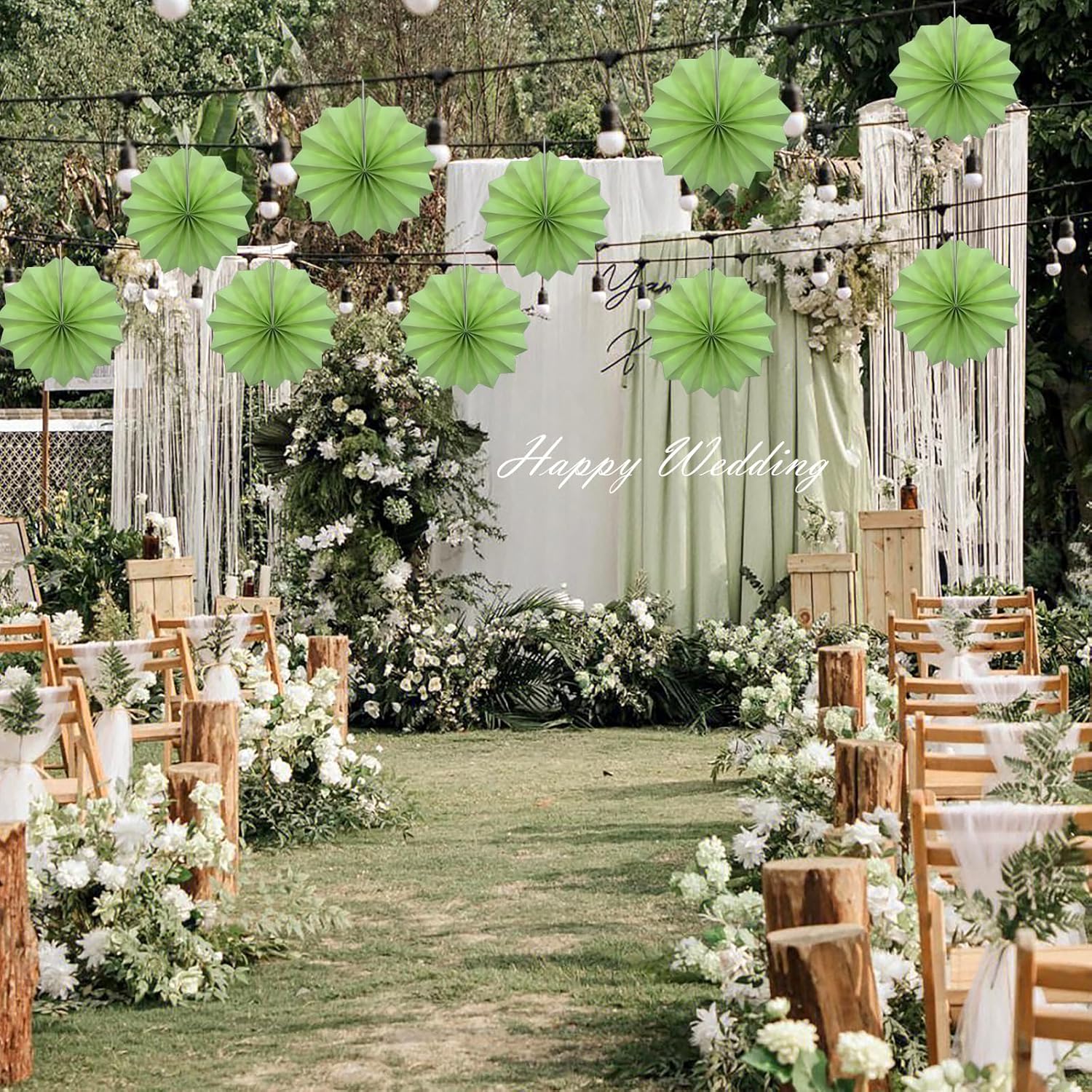 BARTHEW Green Hanging Paper Fans, 8in, 30 Pack, DIY Set, Minimalist Modern Style, Green, Military Theme, Birthday Occasion
