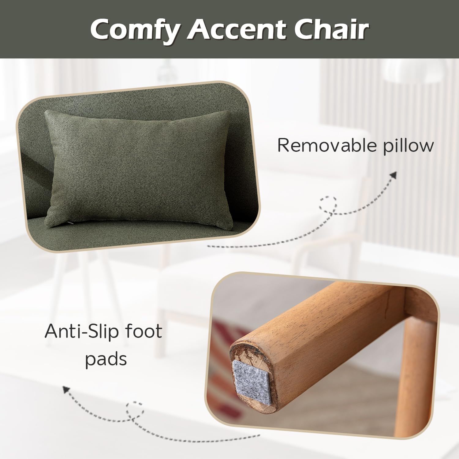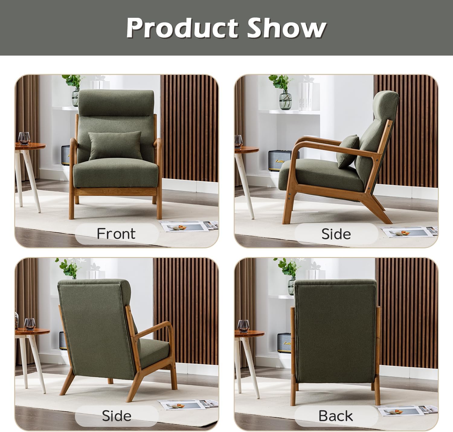 INZOY Mid Century Modern Accent Chair Set of 2, High Back Reading Armchair with Wood Frame, Upholstered Living Room Chairs with Waist Cushion, Single Lounge Arm Chair for Bedroom Sunroom, Green