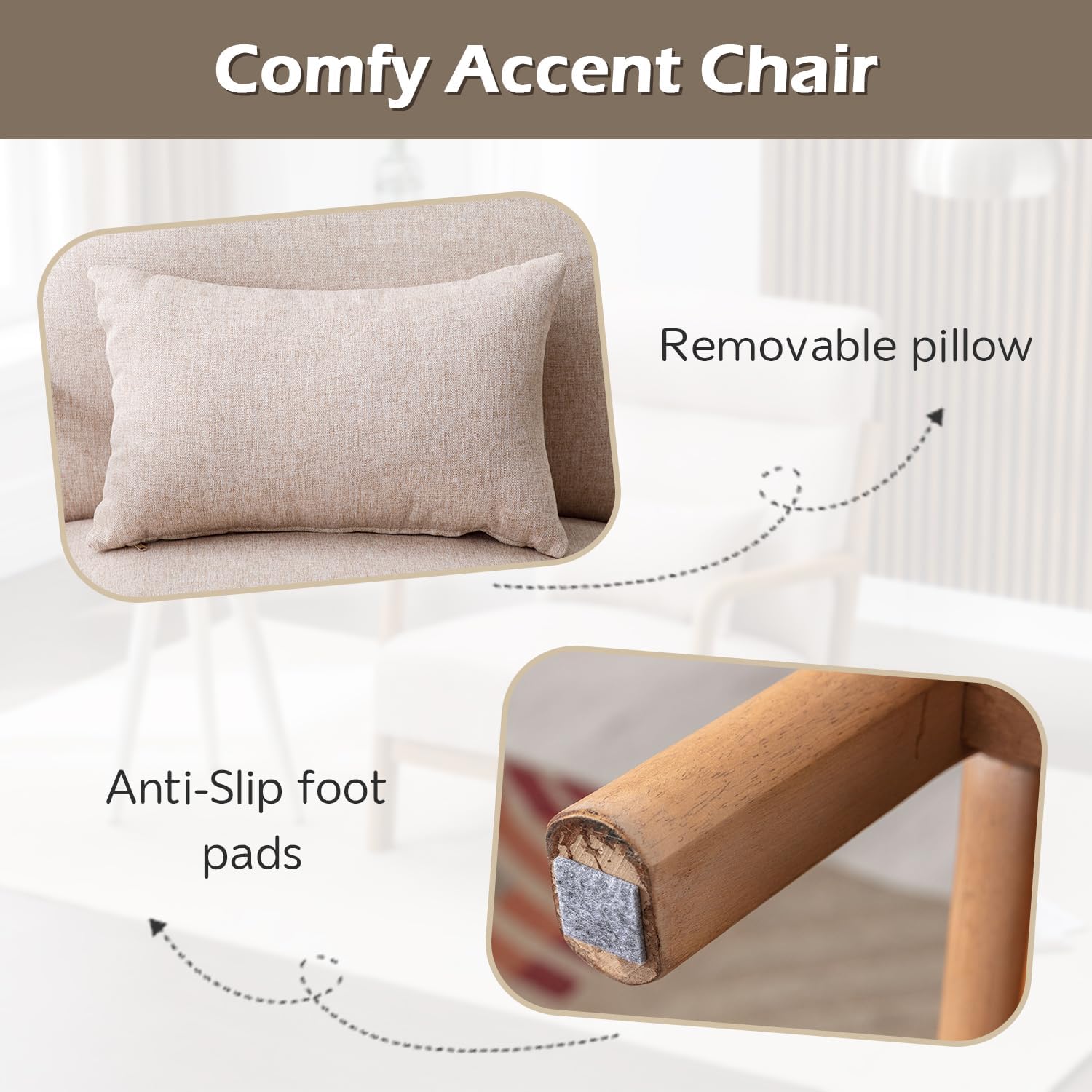 INZOY Mid Century Modern Accent Chair Set of 2, High Back Reading Armchair with Wood Frame, Upholstered Living Room Chairs with Waist Cushion, Single Lounge Arm Chair for Bedroom Sunroom, Beige