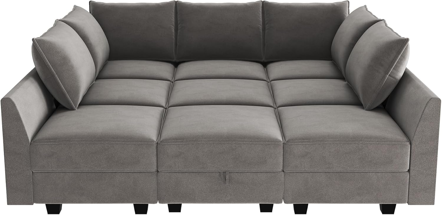 • Easy to transport and assemble: The sectional sleeper sofa consists of 10 boxes that can be passed through narrow doors and upstairs. You can easily install the sofa by following the instructions. Overall Size (D x W x H): 81.5 x 87 x 33.9 inches, Storage dimensions of each seat (D x W x H): 20.50 x 20.50 x 6.00 inches, Weight Capacity: 2970 lbs