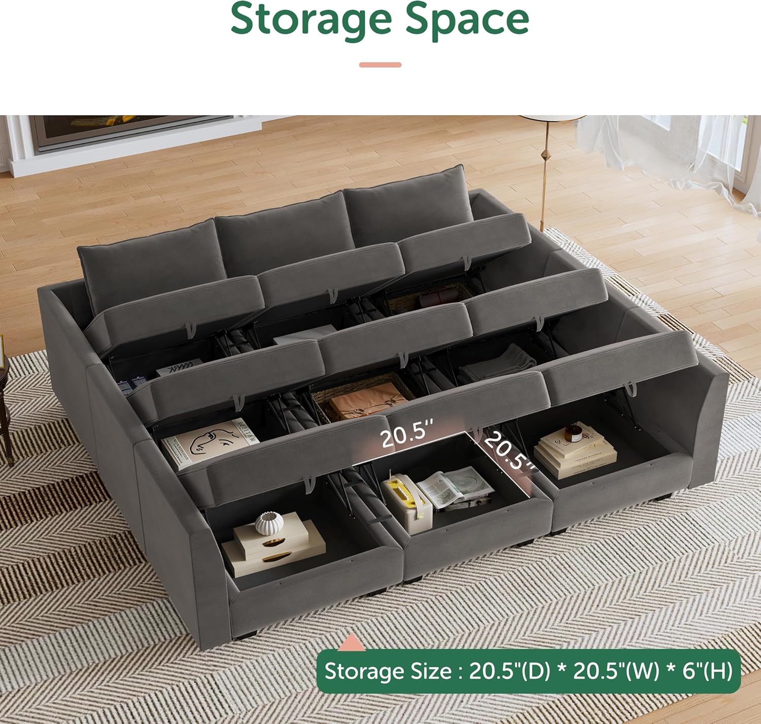 • Hidden Storage Space:The modular sofa has a hidden storage space under each seat for toys, blankets or other things that you want to store. You just need to pull the strap and lift the cushion lid to open it