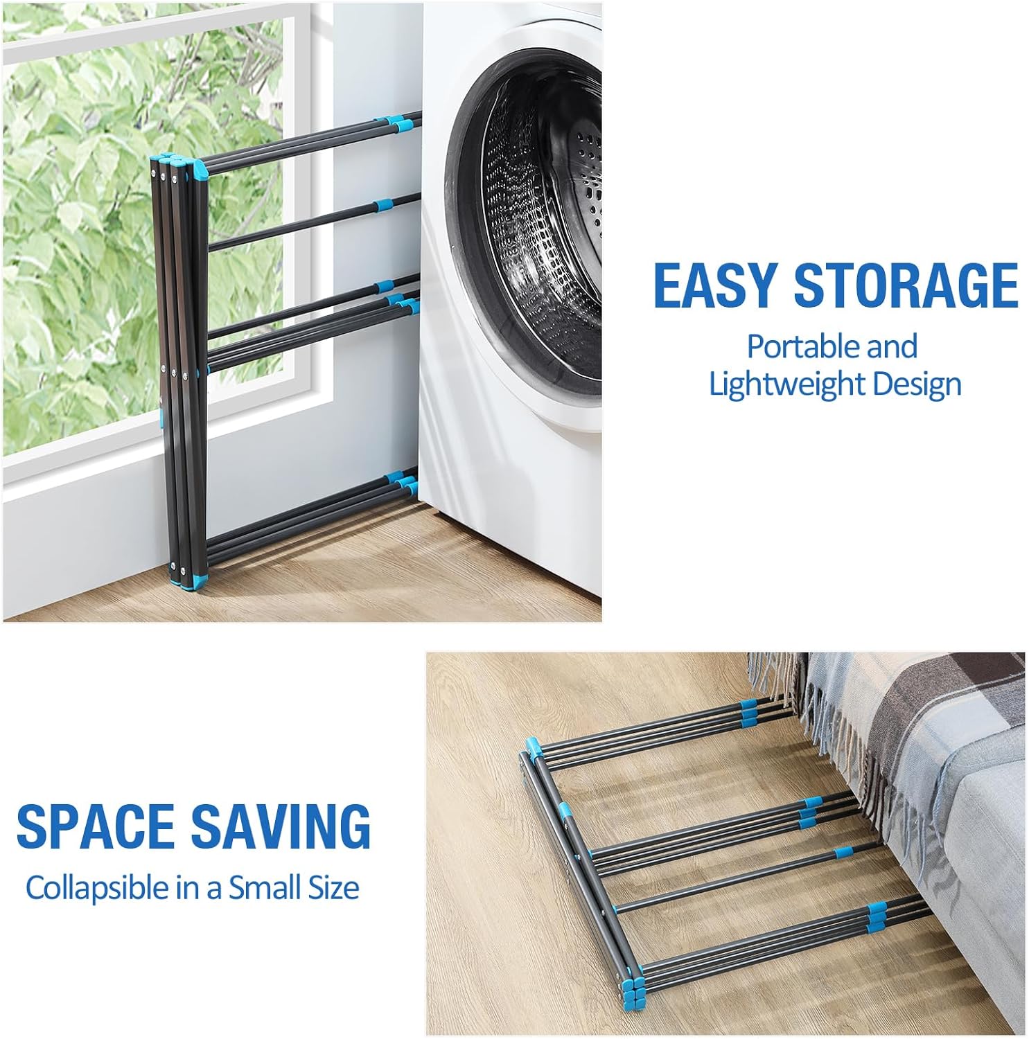 - Lightweight Storage: This foldable drying stand for clothes comes with non-skid rubbers at the bottom that won't scratch the floor. Its collapsible design allows for easy storage and transportation, making it perfect for use in the laundry room or on the patio, or for stashing away in a corner to save space.