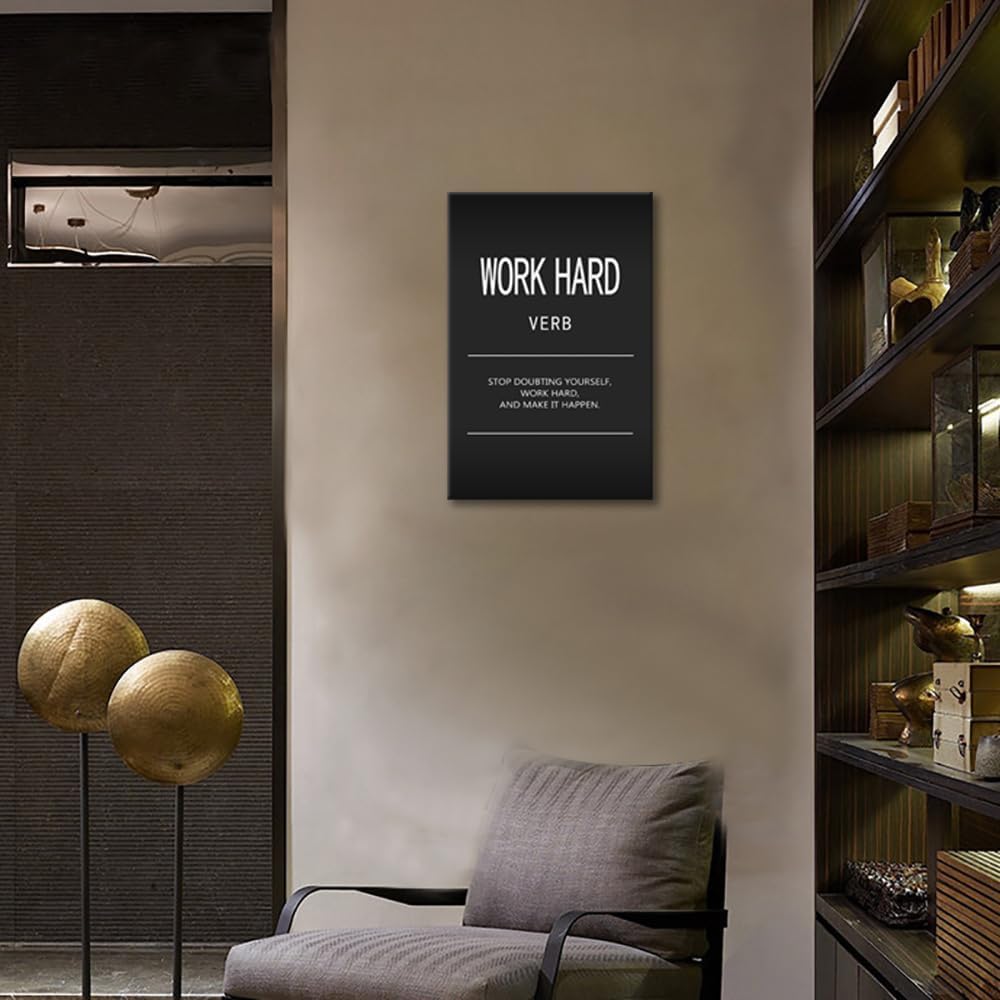 Inspirational Wall Art Office Decor Motivational Entrepreneur Quotes Canvas Painting Work Hard Verb Pictures Posters and Prints Artwork Modern Inspiring Gym Living Room Decor Framed[24" W x 36" H]
