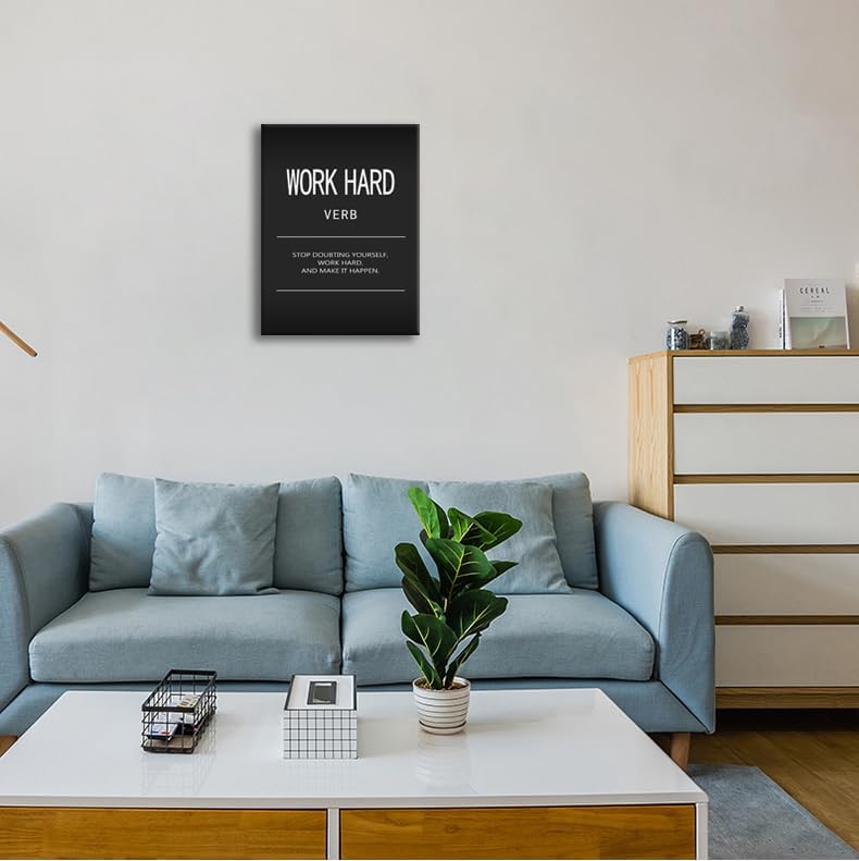 Work Hard Verb Inspirational Wall Art Office Wall Decor Motivational Quotes Posters Canvas Painting Inspirational Pictures Prints Artwork Modern Home Decor Living Room Classroom Framed[18" W x 24" H]